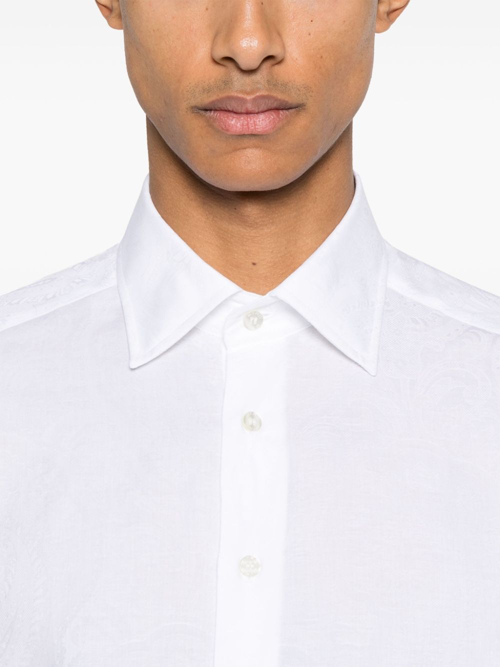 Camasa ETRO Paisley-Jacquard alb, din bumbac premium, cu guler scurt, inchidere cu nasturi, maneci lungi, mansete cu nasturi si tiv drept. Potrivita pentru sezonul primavara/vara. 100% bumbac.