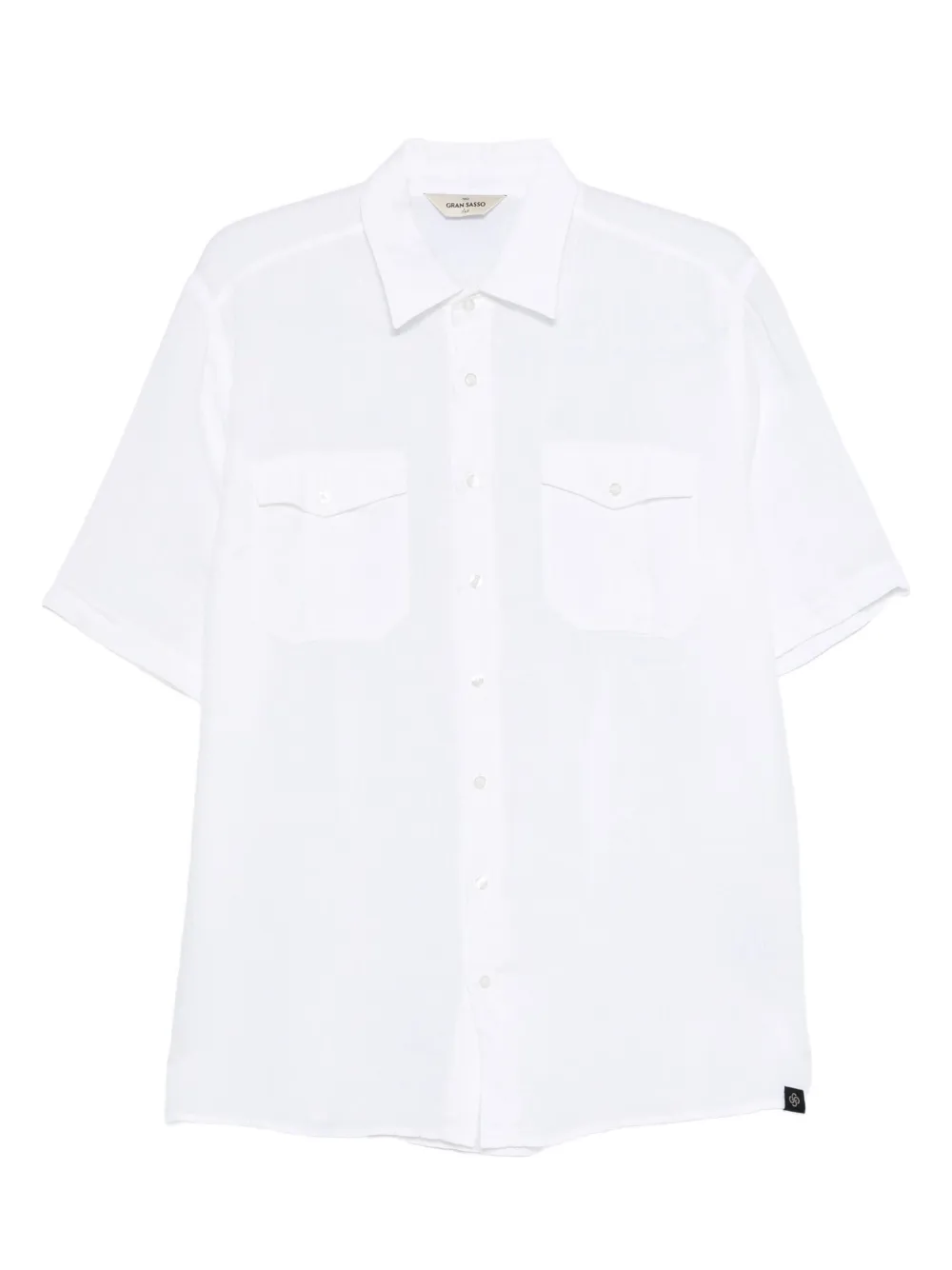Camasa Gran Sasso Linen alb, din in, cu guler clasic, inchidere cu nasturi, maneci scurte, buzunare aplicate la piept, tesatura premium si tiv drept. Potrivita pentru sezonul toamna/iarna. 100% in.