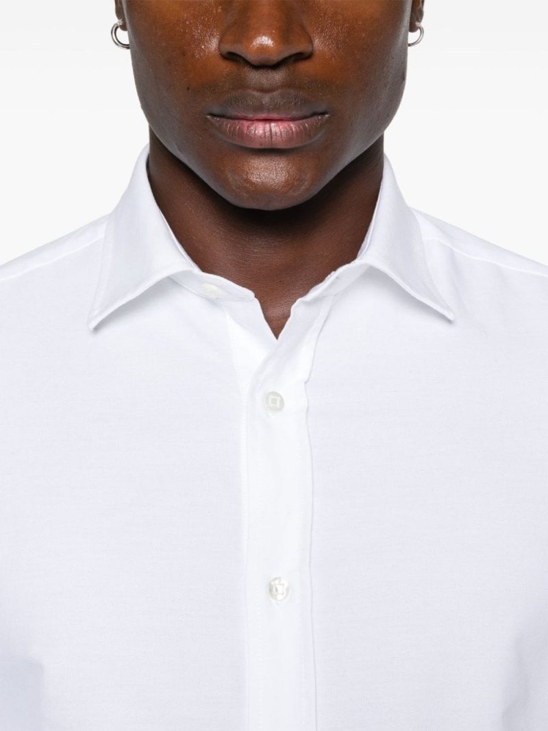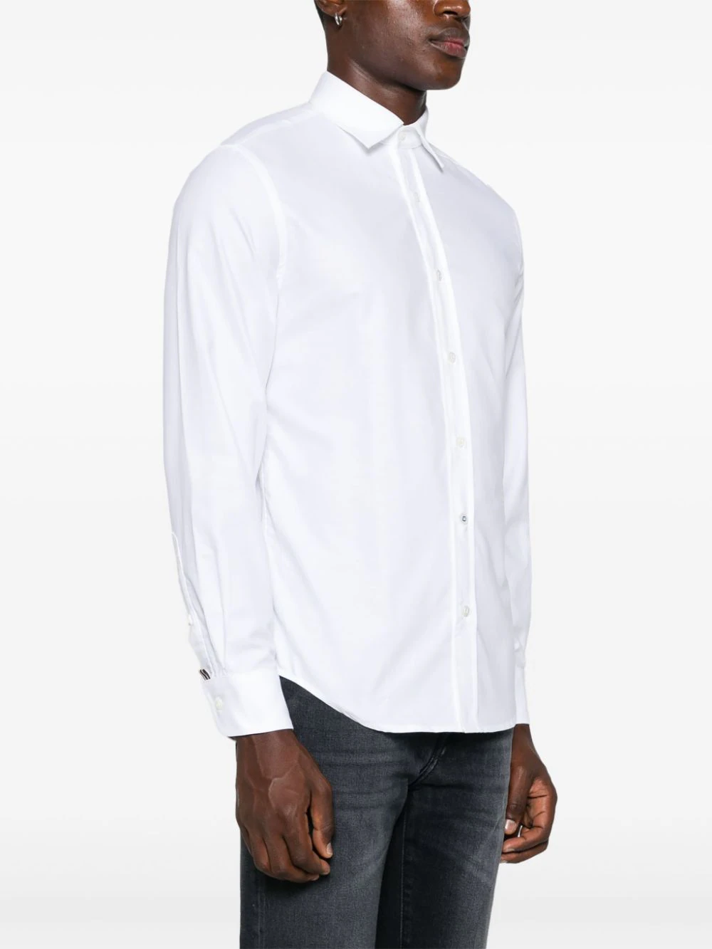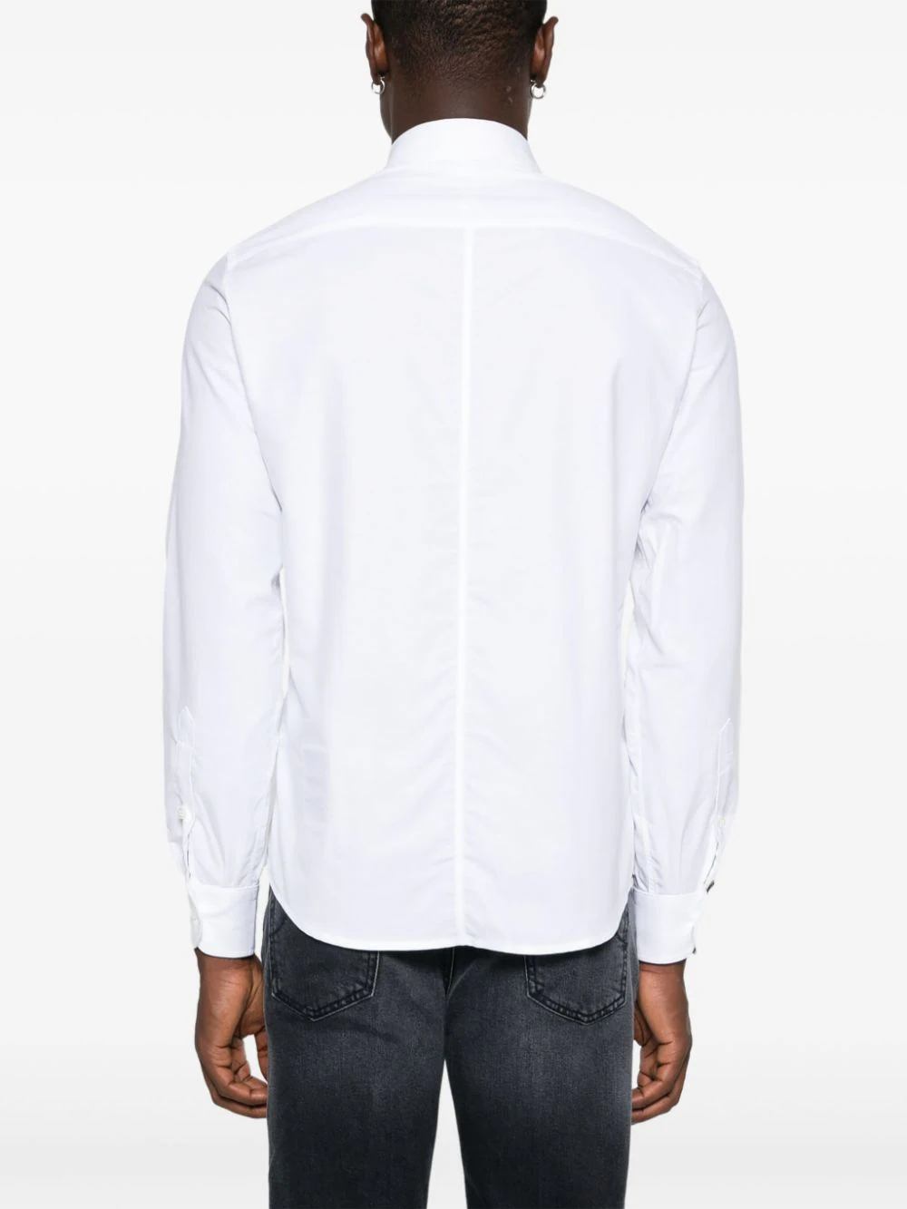 Camasa Jacob Cohen Pique alb, cu guler clasic, inchidere cu nasturi, maneci lungi, mansete cu nasture, logo brodat pe partea din fata, cusatura verticala pe spate si tiv curbat. Potrivita pentru sezonul toamna/iarna. 100% bumbac.