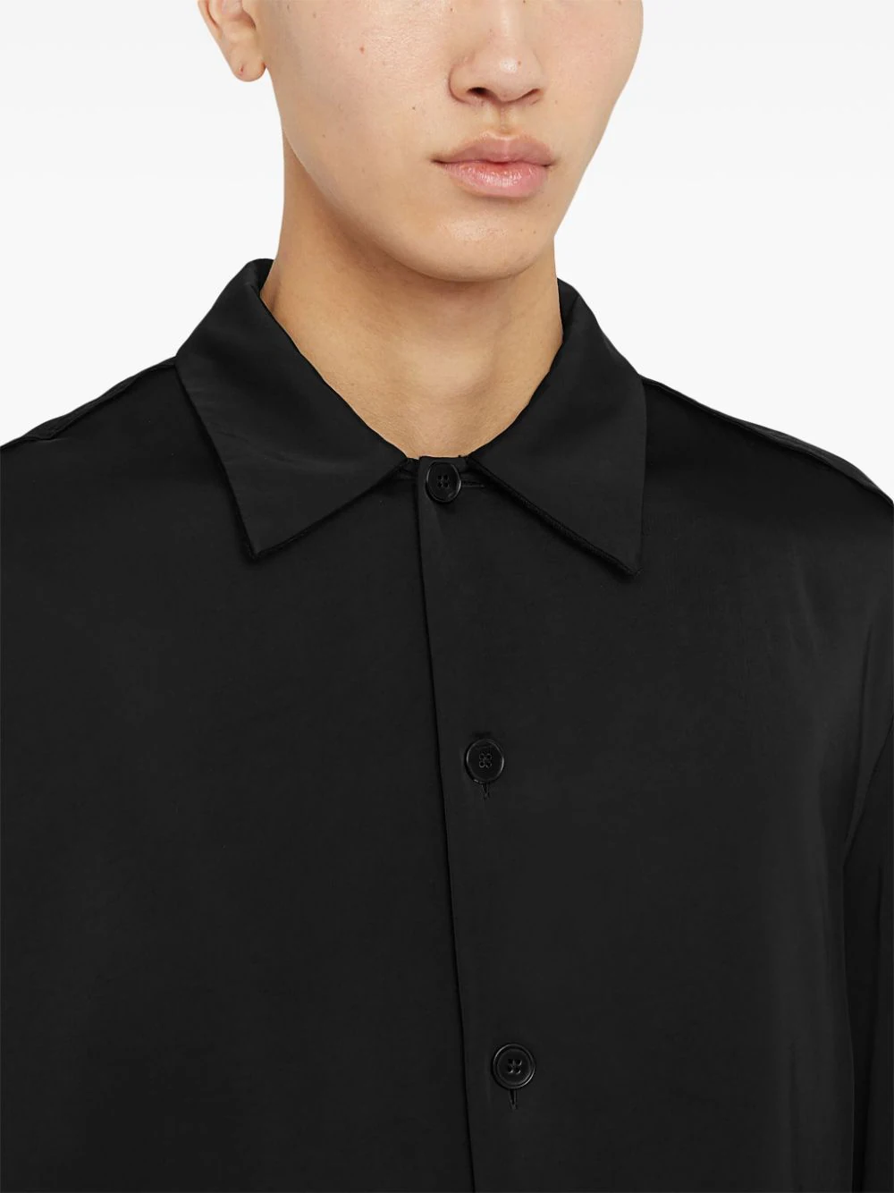 Camasa JIL SANDER Long-Sleeve negru, din viscoza, cu guler clasic, inchidere cu nasturi, umeri cazuti, maneci lungi, mansete cu nasturi, eticheta cu logo Jil Sander pe interior si tiv drept. Potrivita pentru sezonul toamna/iarna. 100% viscoza.
