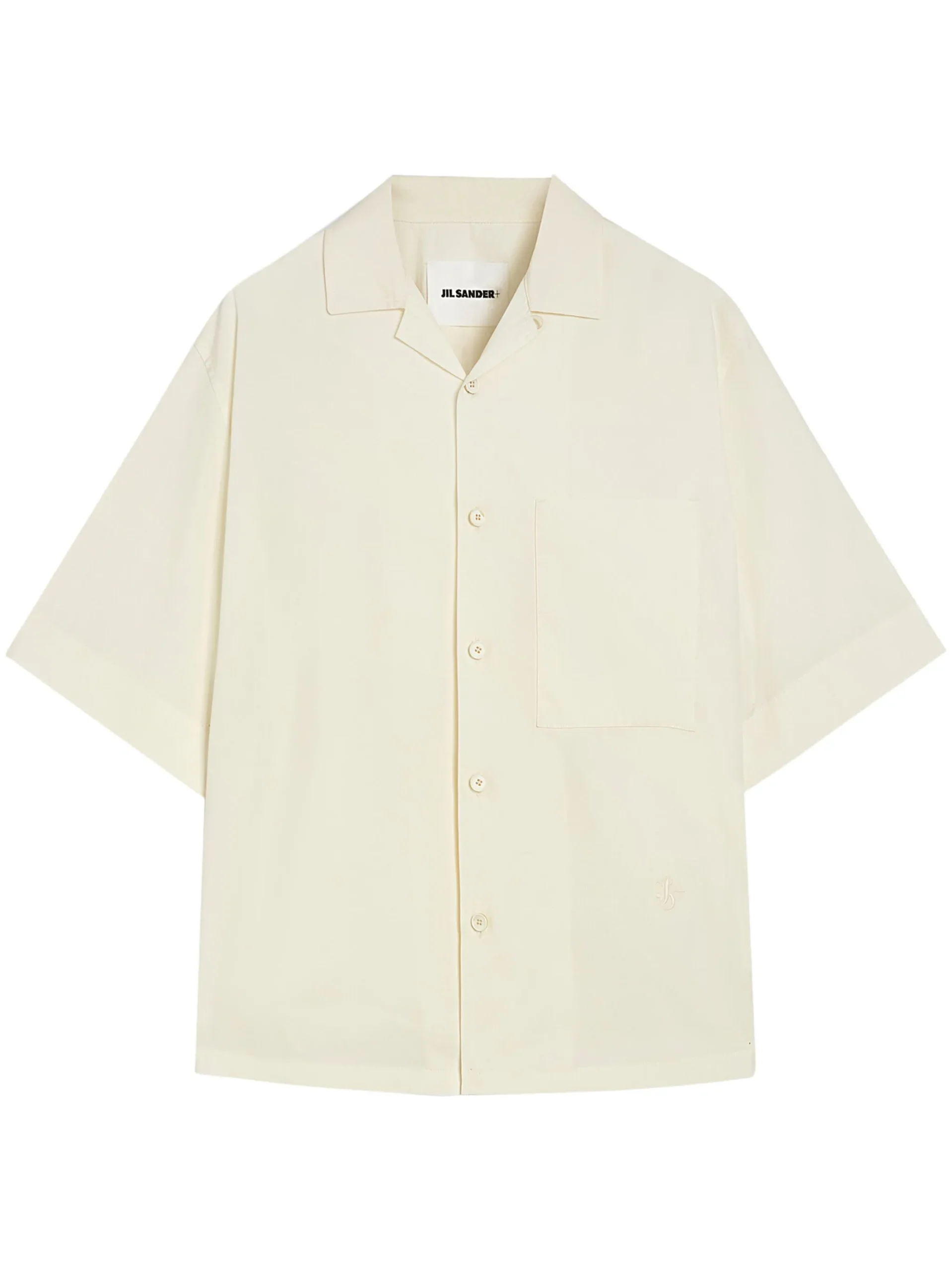 Camasa Jil Sander short-sleeve alba, maneci scurte, inchidere cu nasturi frontali, buzunar la piept si tiv drept. Potrivita pentru sezonul primavara/vara.100% bumbac