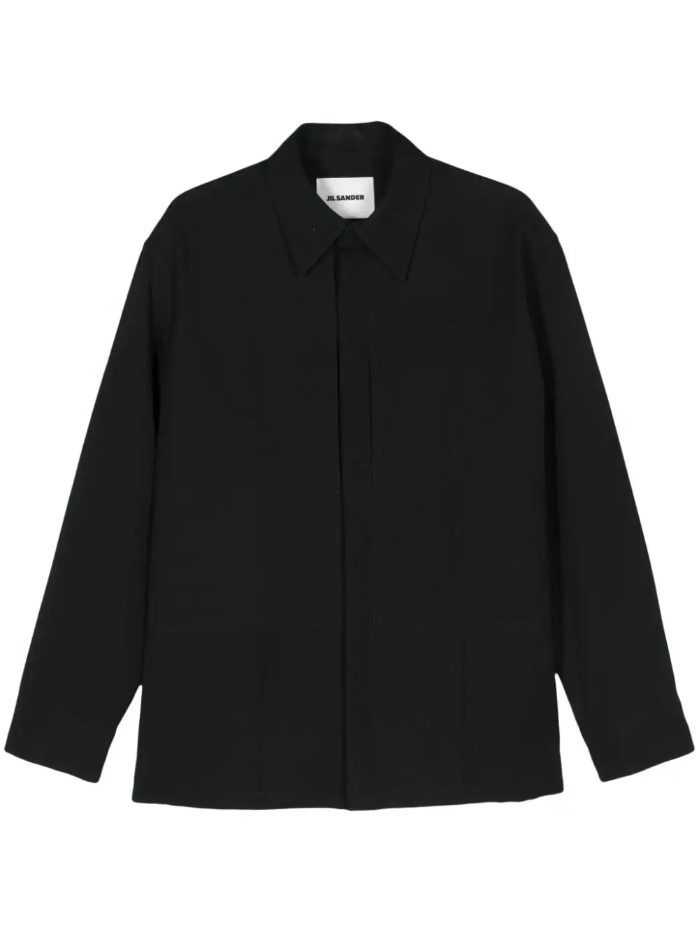 Camasa JIL SANDER Wool negru, din lana, cu guler clasic, inchidere cu nasturi ascunsi, umeri cazuti, maneci lungi, mansete cu nasturi, slituri laterale, croiala lejera si tiv drept. Potrivita pentru sezonul toamna/iarna. 100% lana.