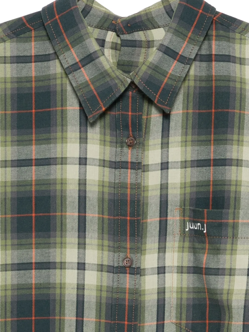 Camasa Juun.J Plaid Pocket khaki, reelaxed fit, realizata din bumbac, cu guler clasic, inchidere cu nasturi la spate, maneci lungi, logo brodat la piept, grafica Tartan si tiv drept. Potrivita pentru sezonul primavara/vara. 100% bumbac