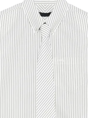 Camasa Juun.J Striped Sleeveless alb, realizata din bumbac, regular fit, cu umeri supradimensionati, inchidere cu nasturi, cravata detasabila, grafica cu dungi in tesatura si tiv asimetric. Potrivita pentru sezonul primavara/vara. 67% bumbac; 33% poliester.