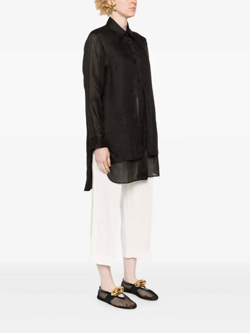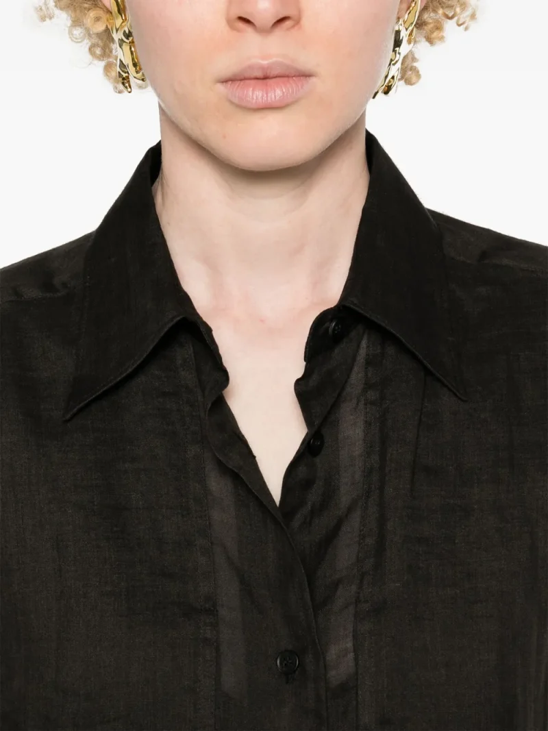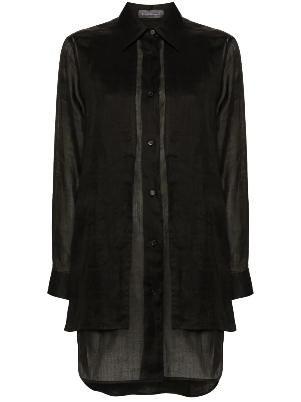 Camasa Lorena Antoniazzi Layered Ramie negru, din ramie, design in straturi, cu guler clasic, inchidere cu nasturi, maneci lungi, mansete cu nasturi, constructie semitransparenta si tiv drept. Potrivita pentru sezonul primavraa/vara. 100% ramie.