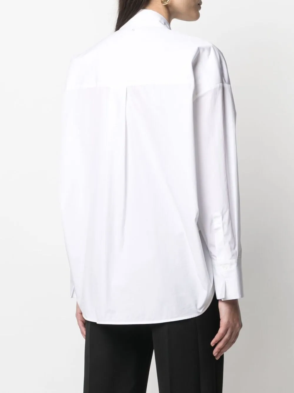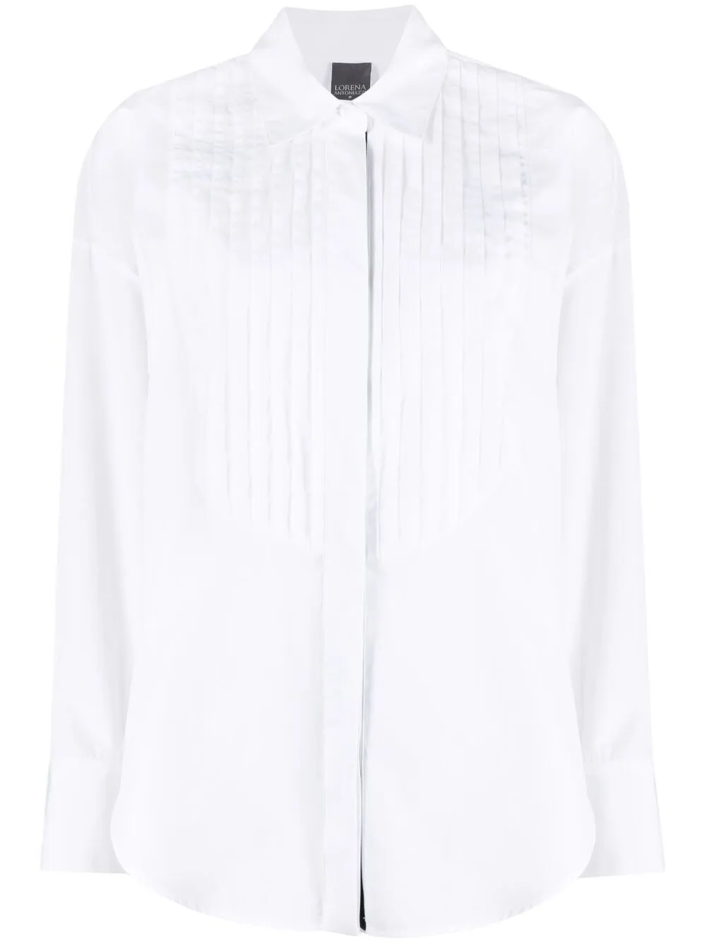 Camasa Lorena Antoniazzi Ribbed Long-Sleeved alb, din bumbac, cu guler clasic, inchidere cu nasturi, maneci lungi, mansete cu nasturi, detalii plisate si tiv drept. Potrivita pentru sezonul primavara/vara. 100% bumbac.
