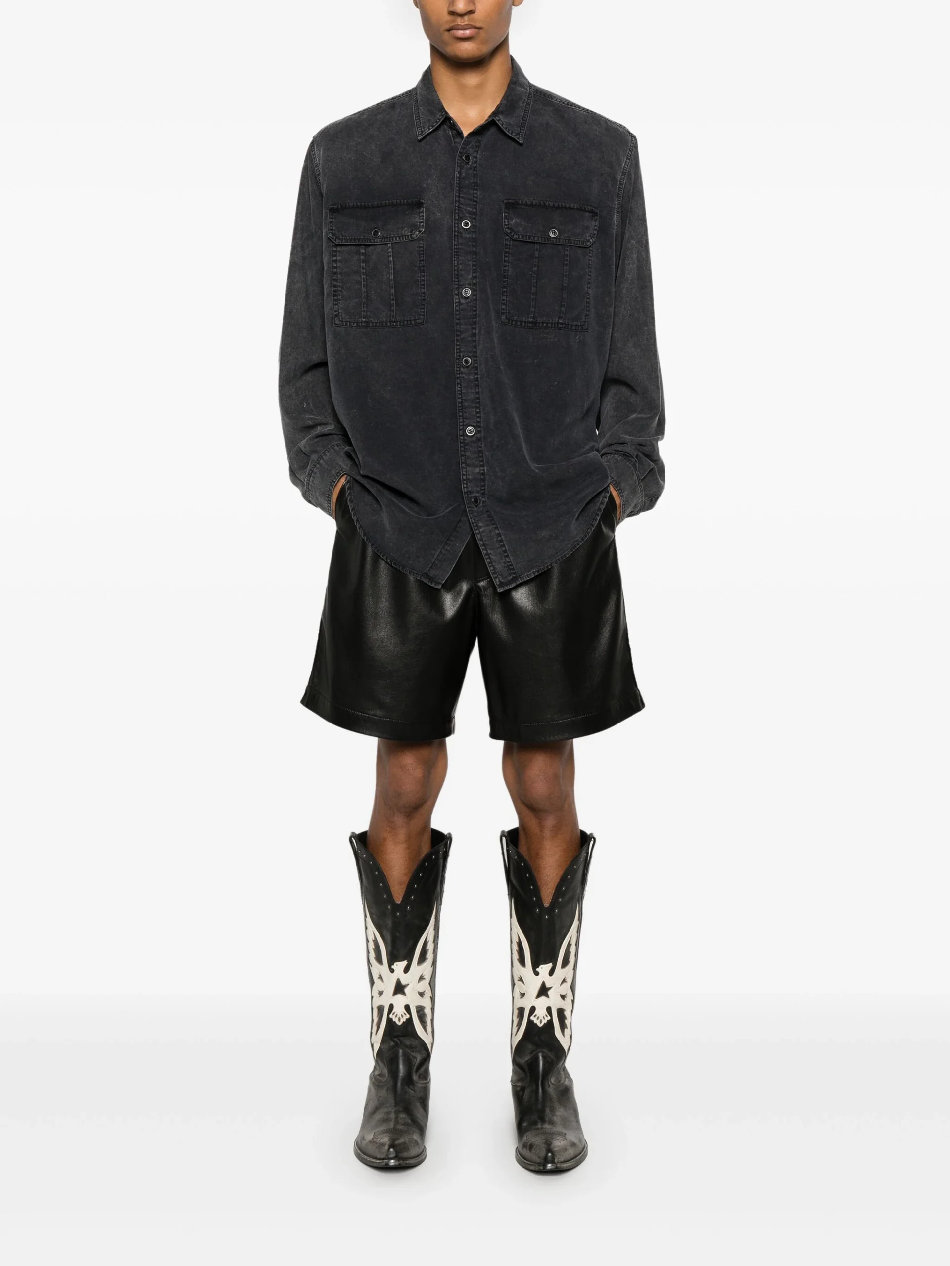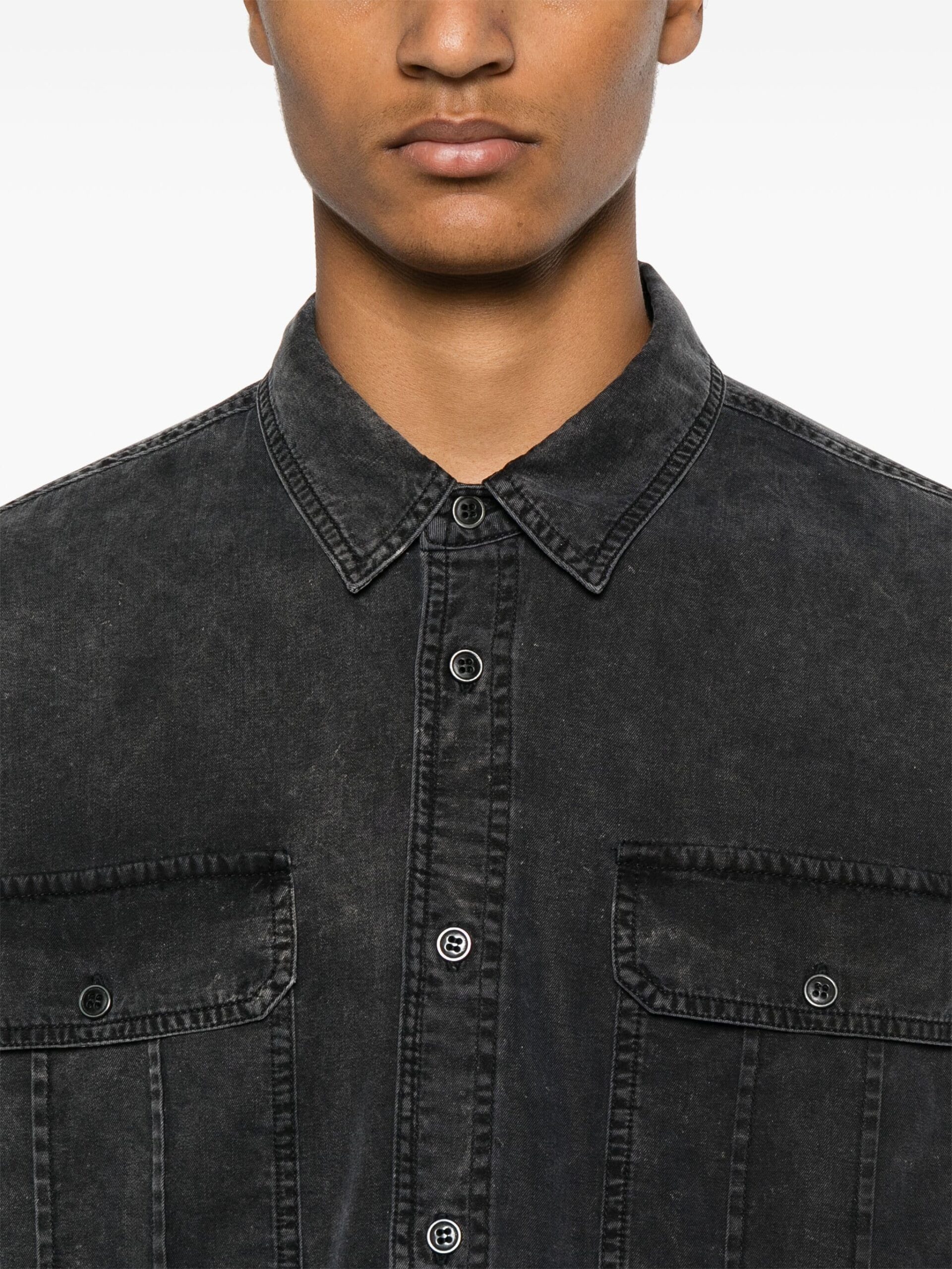 Camasa Marant Phelton neagra, cu guler clasic si inchidere cu nasturi, maneci lungi, mansete cu nasturi, buzunare cargo la piept si tiv rotunjit. Potrivita pentru sezonul toamna/iarna.