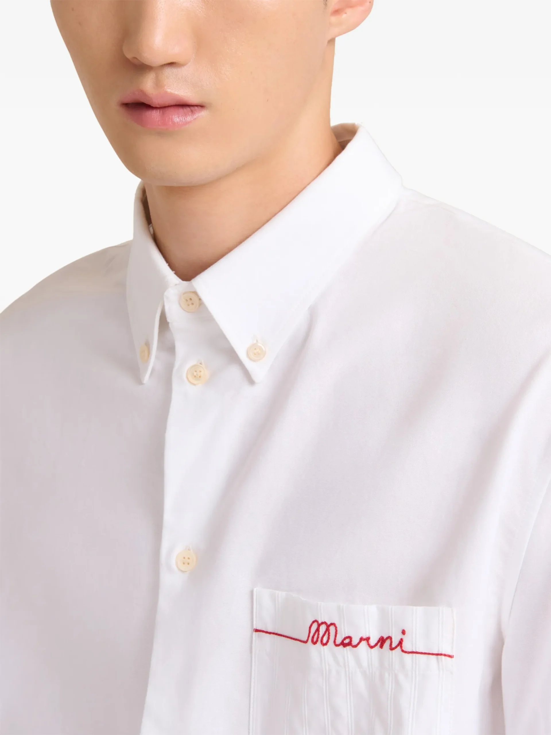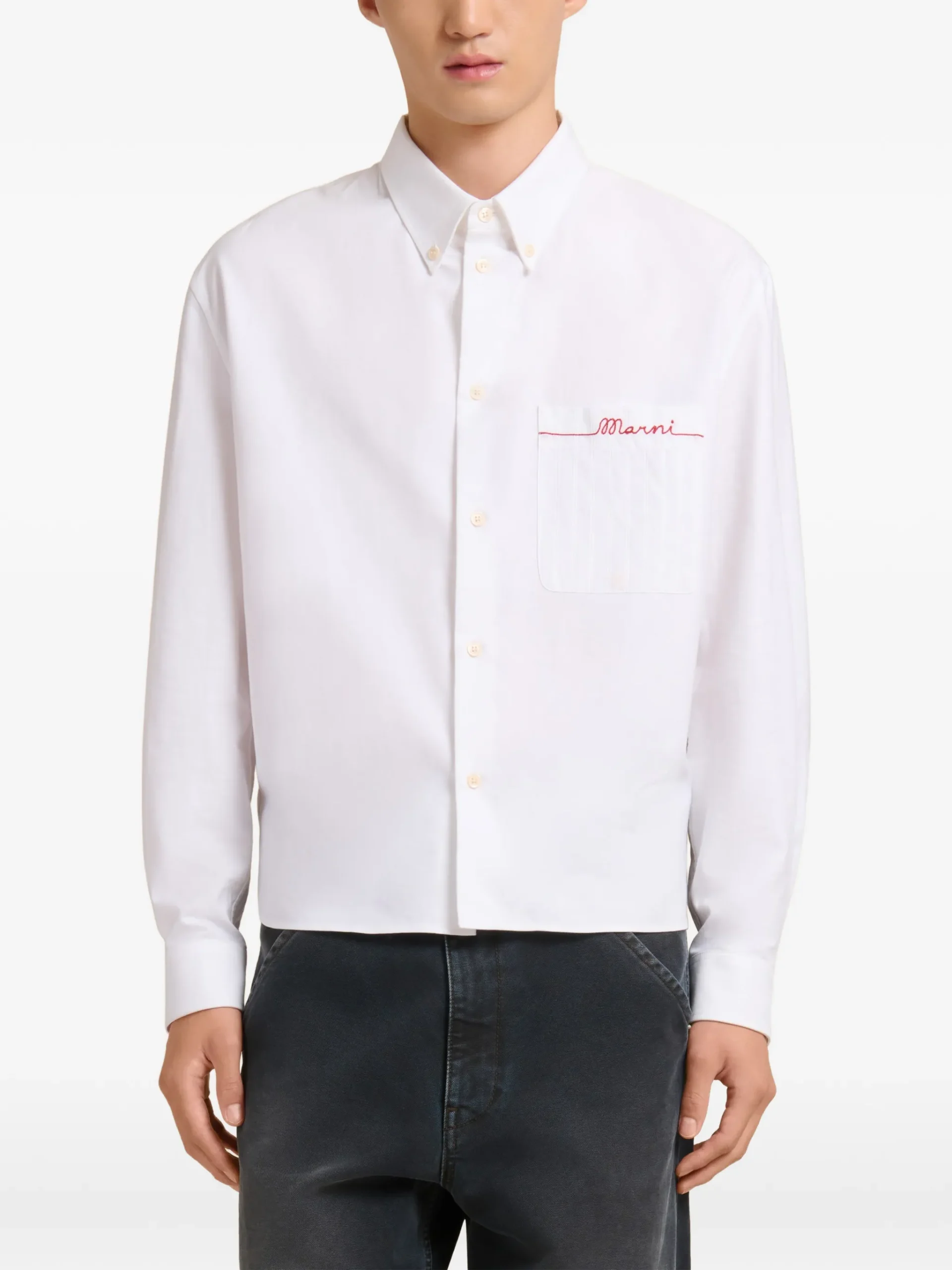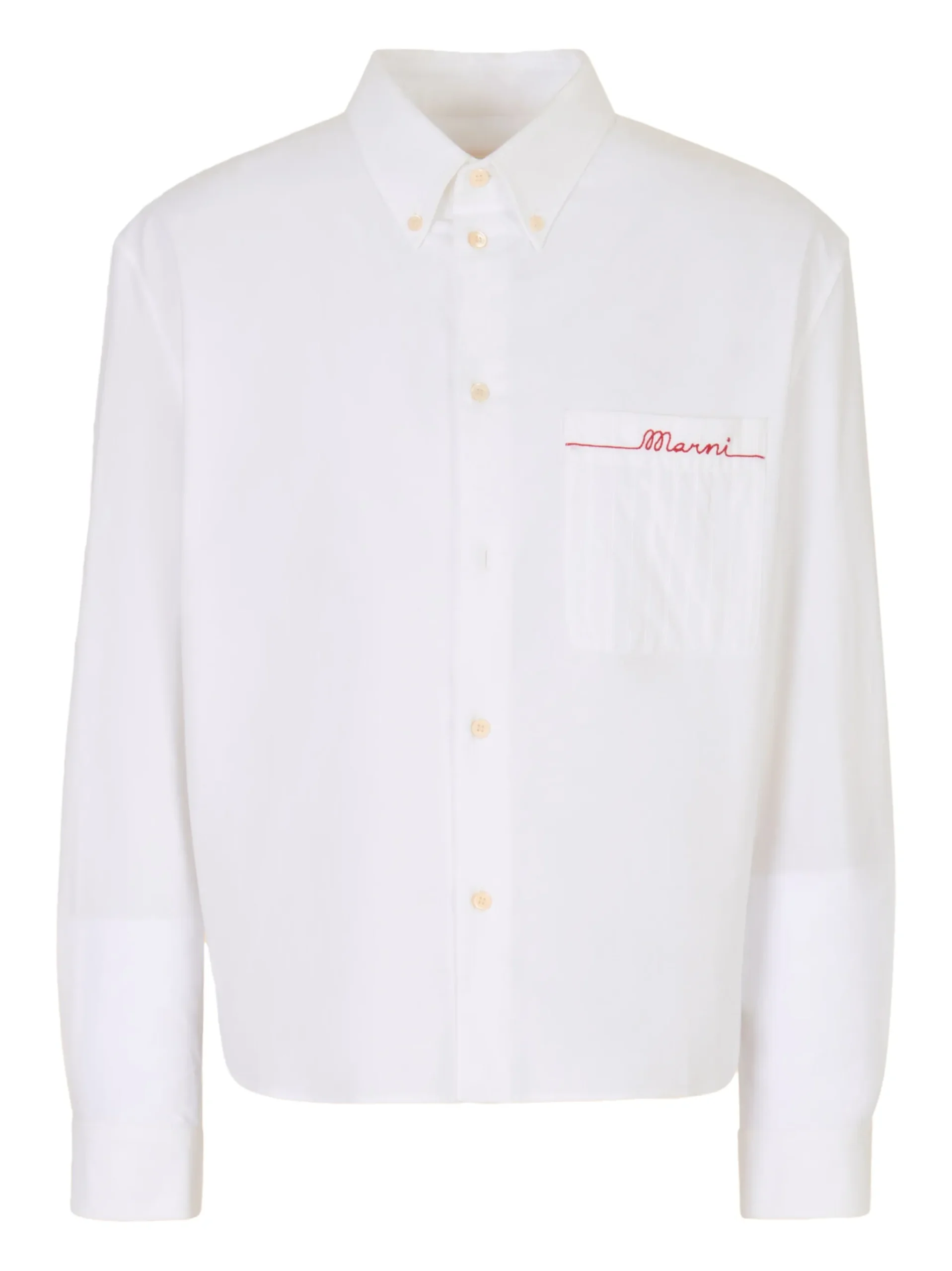 Camasa Marni button-down pocket alb, cu guler tip button-down, buzunar pe piept, logo brodat si maneci lungi. 100% bumbac