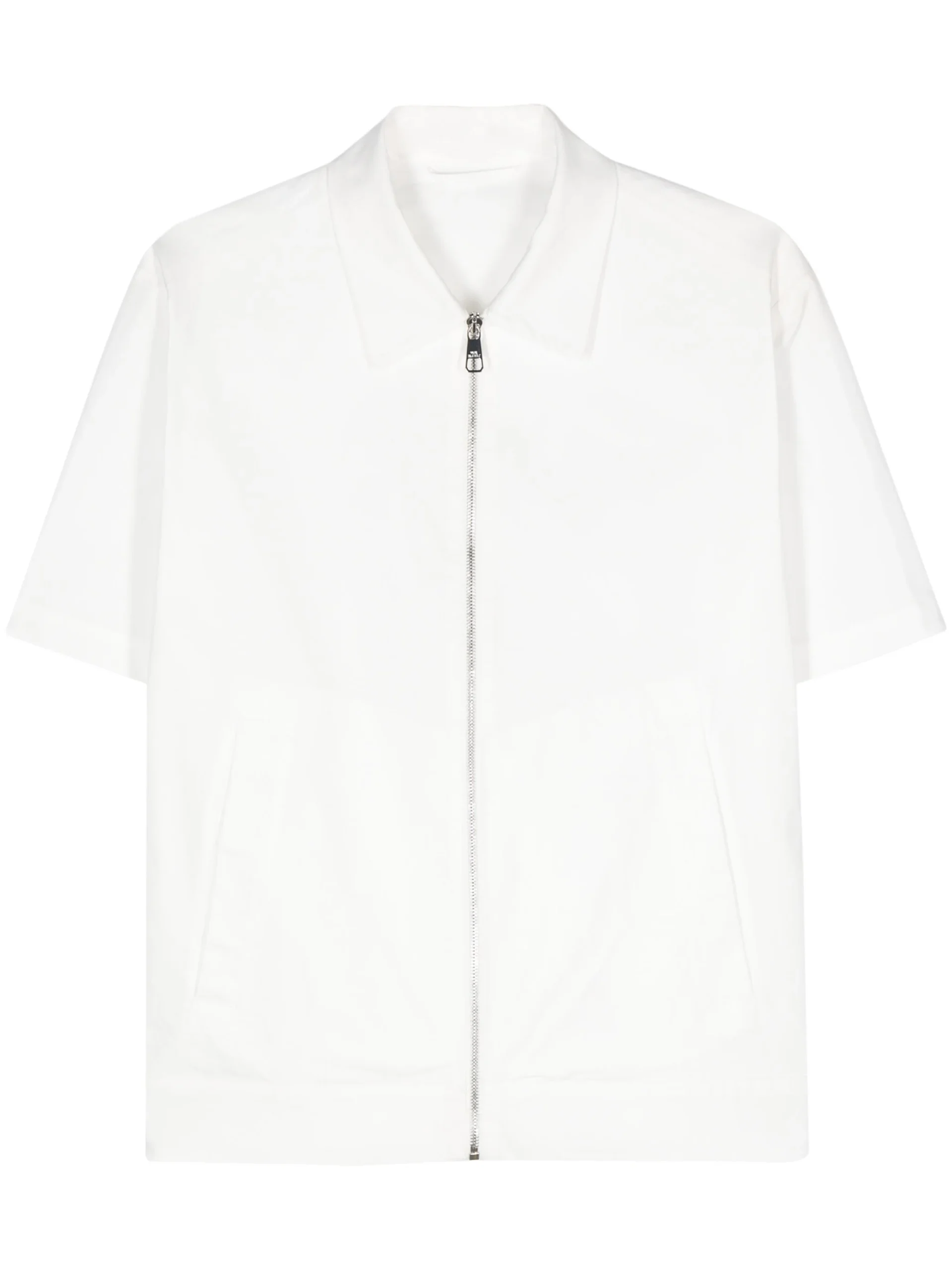 Camasa alba din bumbac si acetat, cu guler clasic, inchidere cu fermoar, maneci medii, buzunare laterale si tiv drept. Potrivita pentru sezonul primavara/vara. 66% bumbac; 34% acetat; 80 poliester; 20% bumbac.