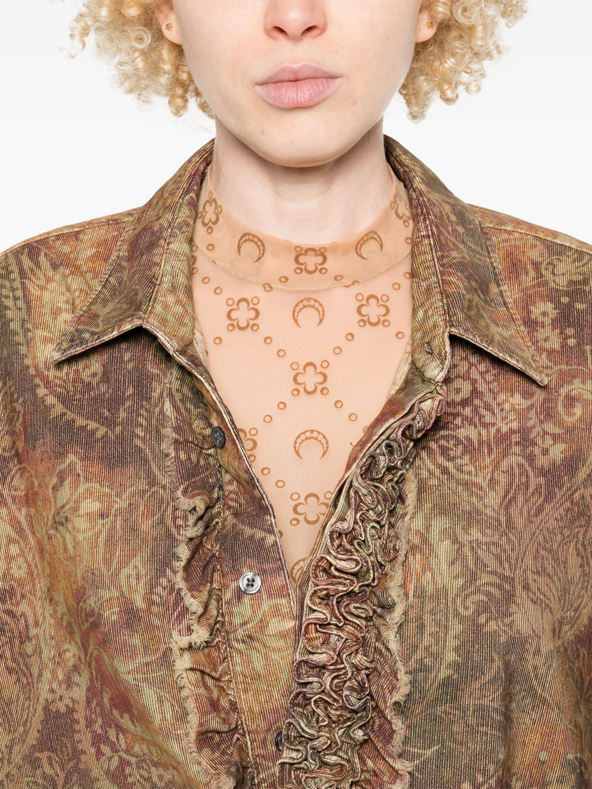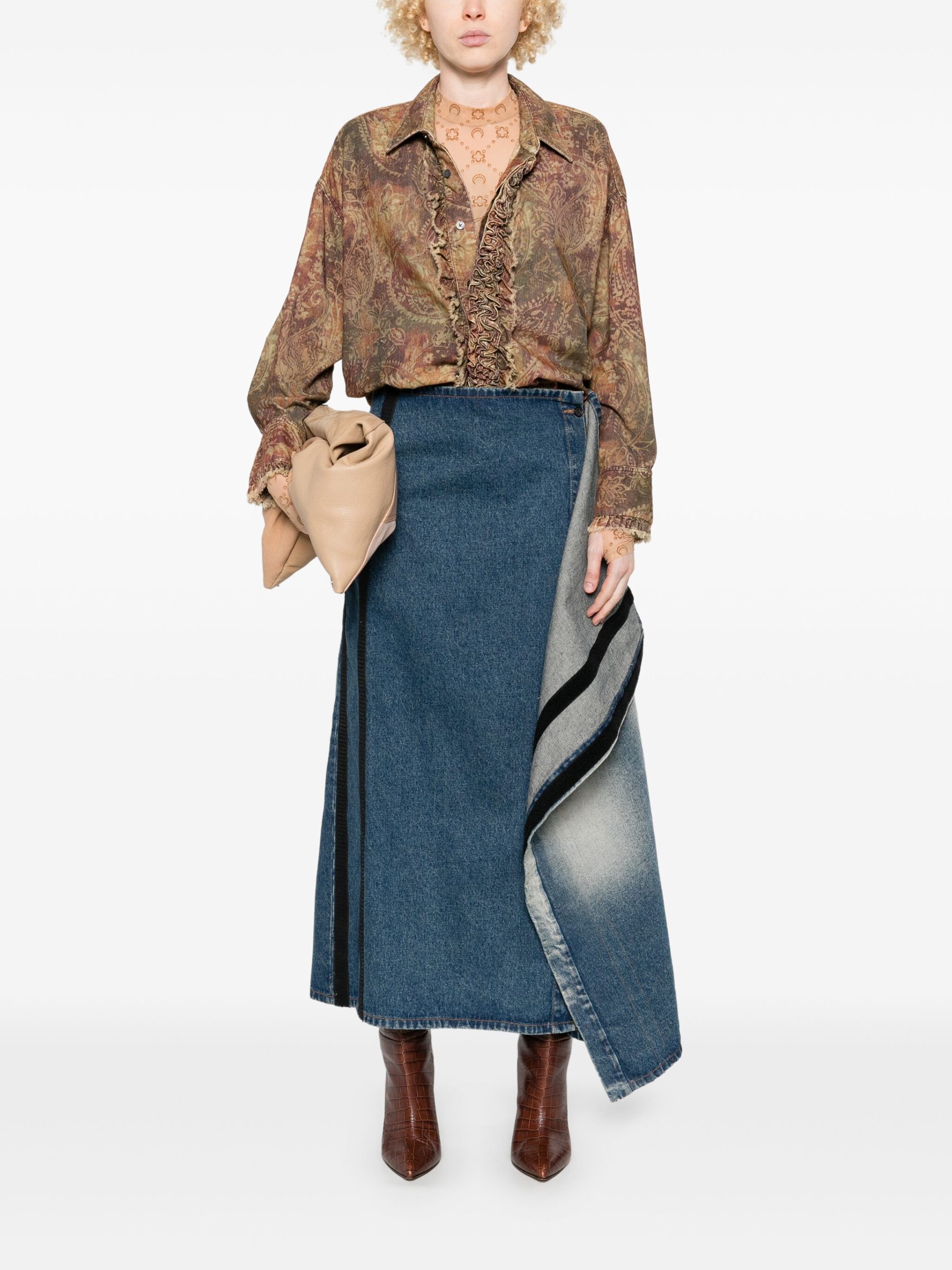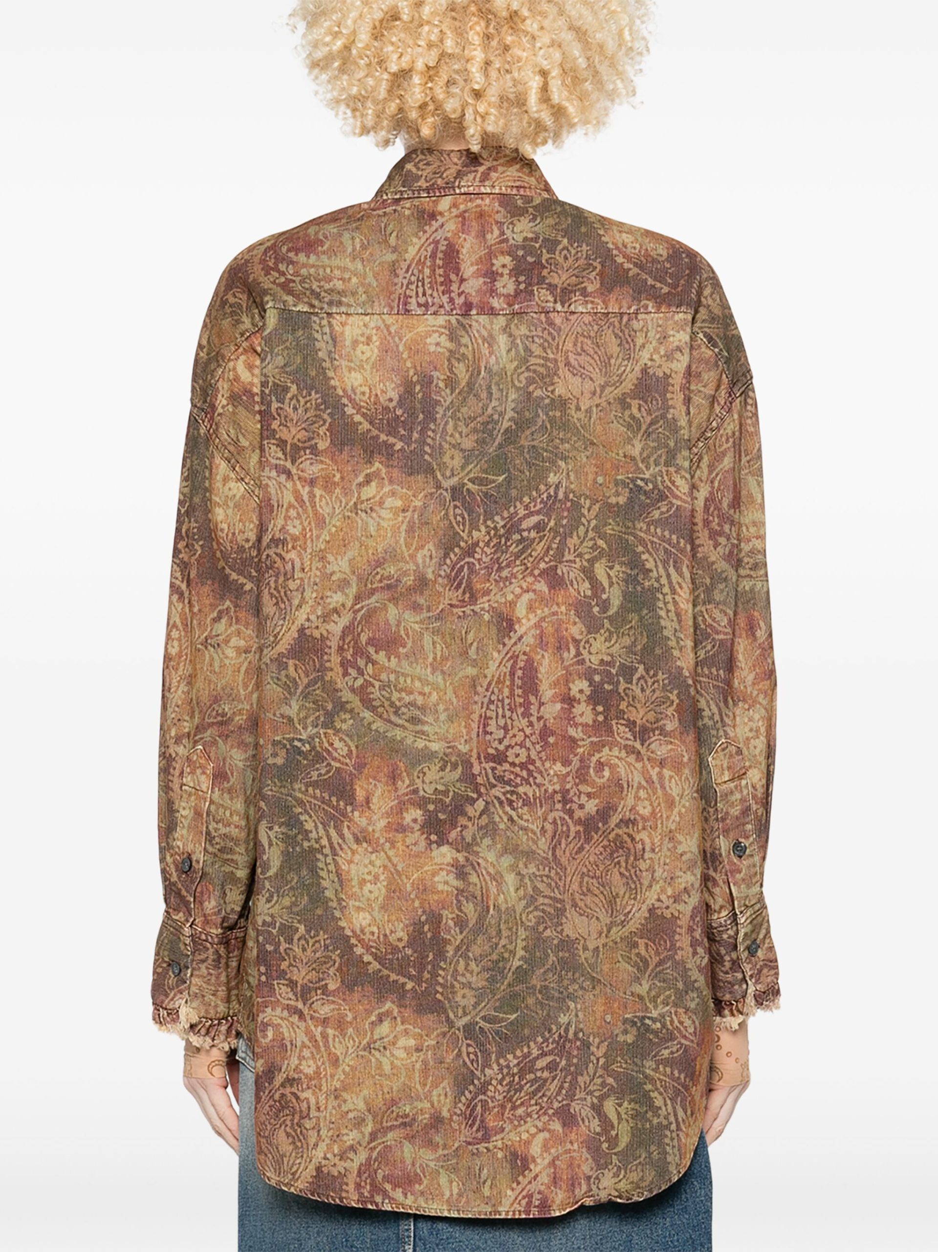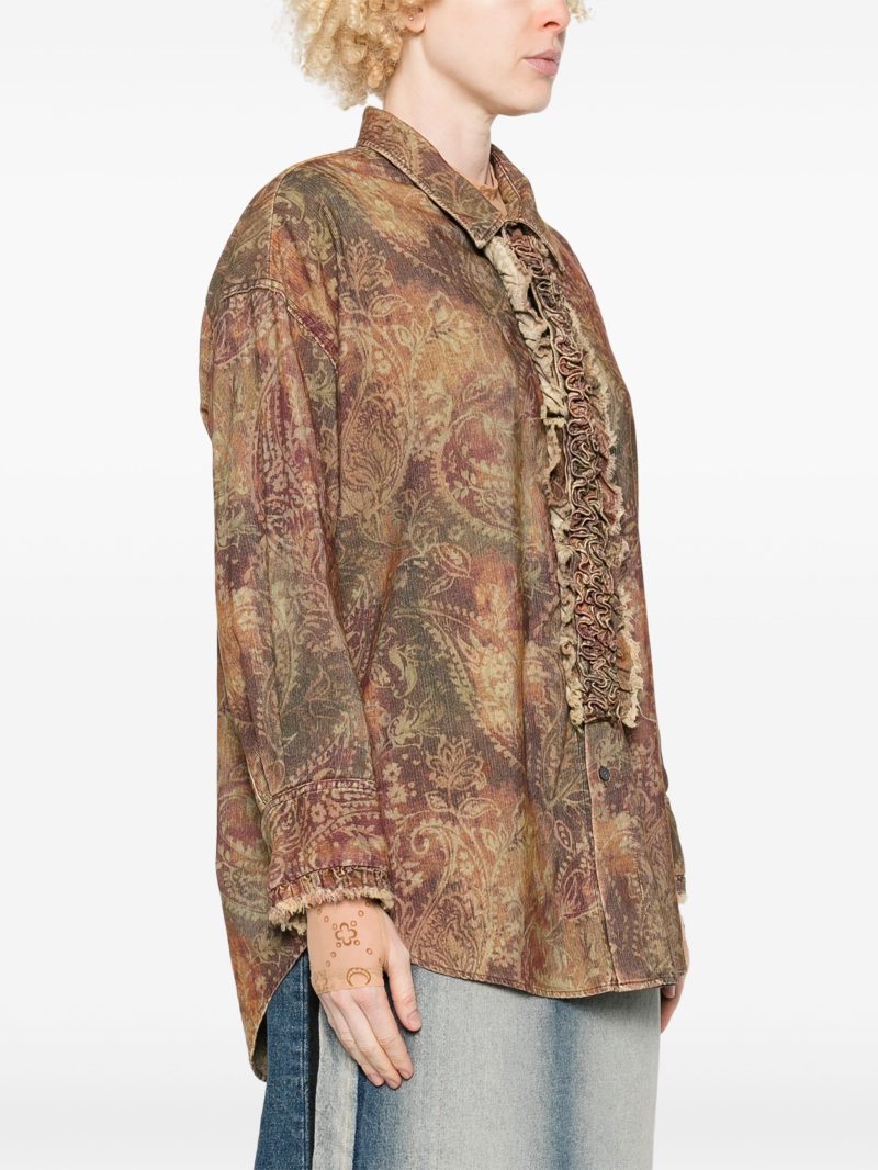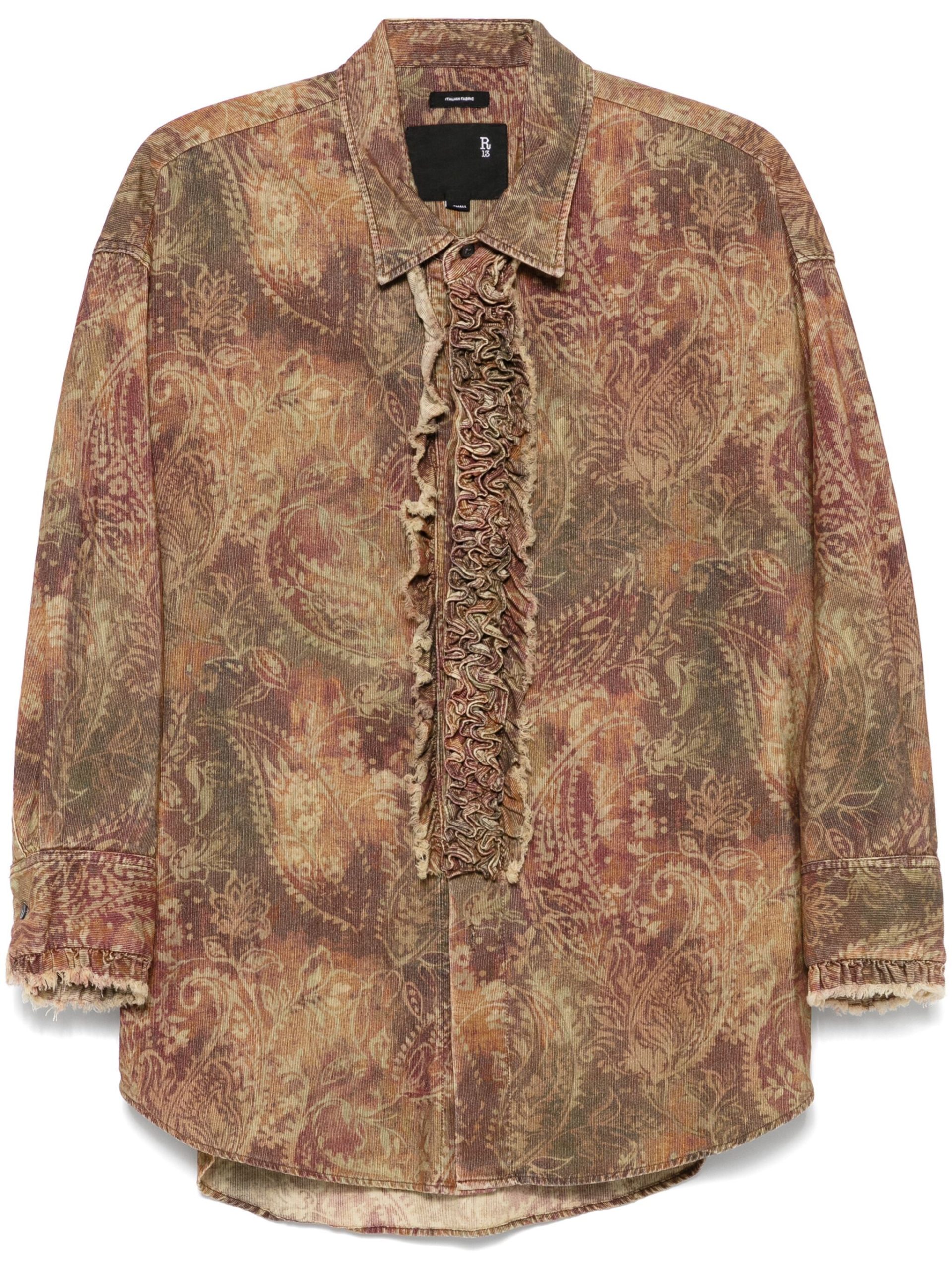 Camasa R13 Drop Neck Tuxedo maro, imprimeu Paisley, inchidere cu nasturi, mansete cu nasturi si tiv curbat.100% bumbac