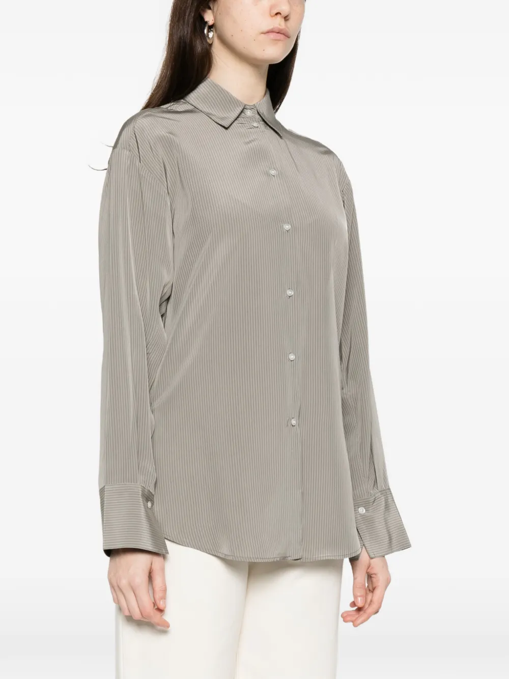 Camasa Rohe Striped Button-Down gri, din viscoza, cu guler clasic, inchidere cu nasturi, maneci lungi, grafica in dungi si tiv drept. Potrivita pentru sezonul primavara/vara. 100% viscoza.