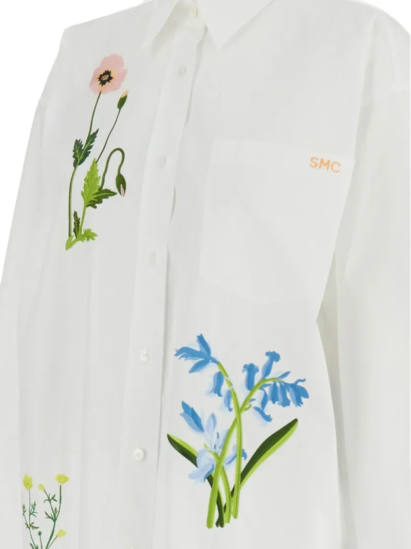 Camasa Stella McCartney Floral-Embroidered alb, cu guler clasic, inchidere cu nasturi, maneci lungi, mansete cu nasturi, buzunar aplicat la piept, decorata cu broderii florale si tiv drept. Potrivita pentru sezonul toamna/iarna. 100% bumbac.