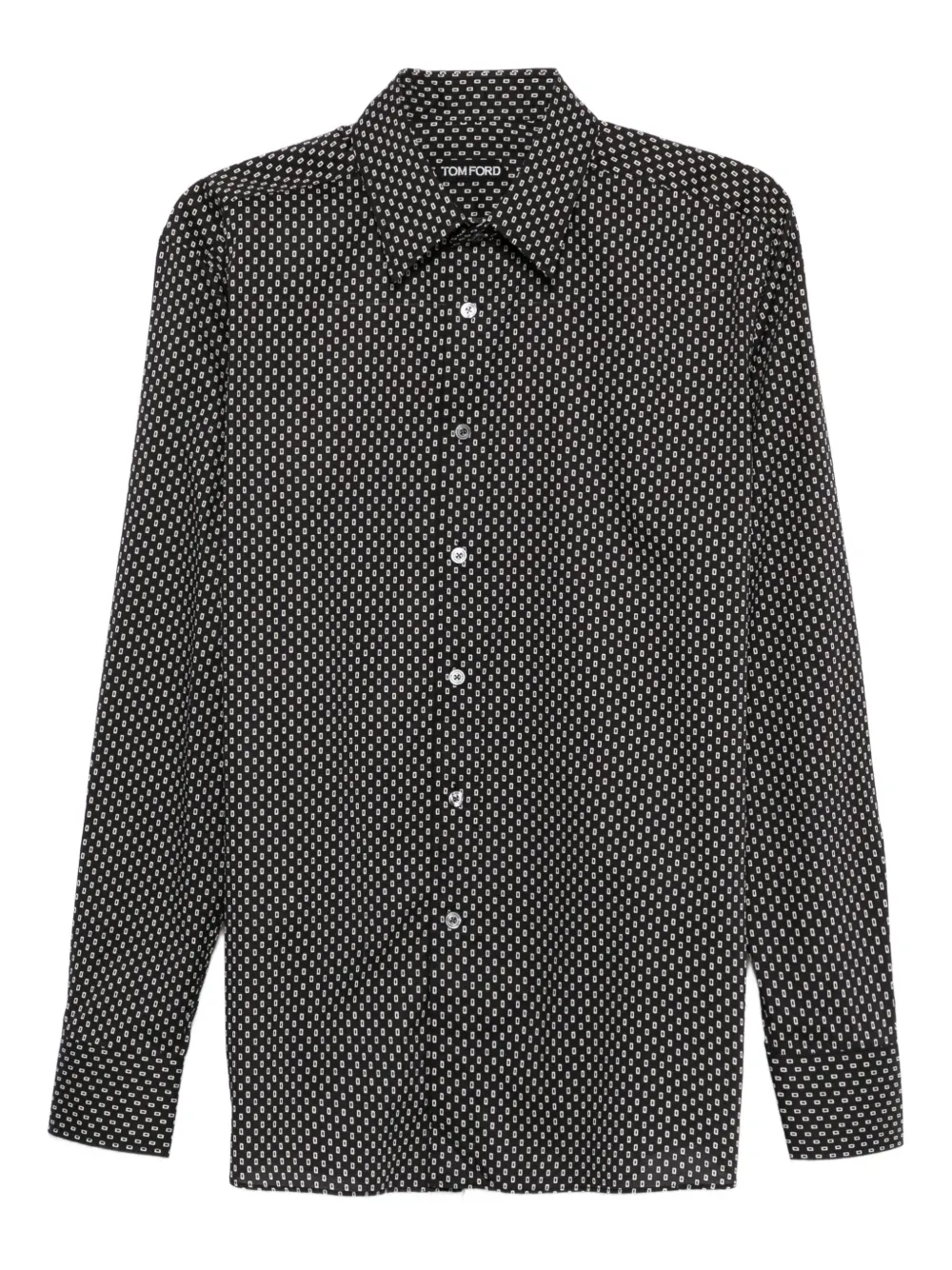Camasa TOM FORD Geometric-Print negru, din bumbac, cu guler clasic, inchidere cu nasturi, maneci lungi, mansete cu nasturi, grafica geometrica imprimata si tiv drept. Potrivita pentru sezonul primavara/vara. 100% bumbac.
