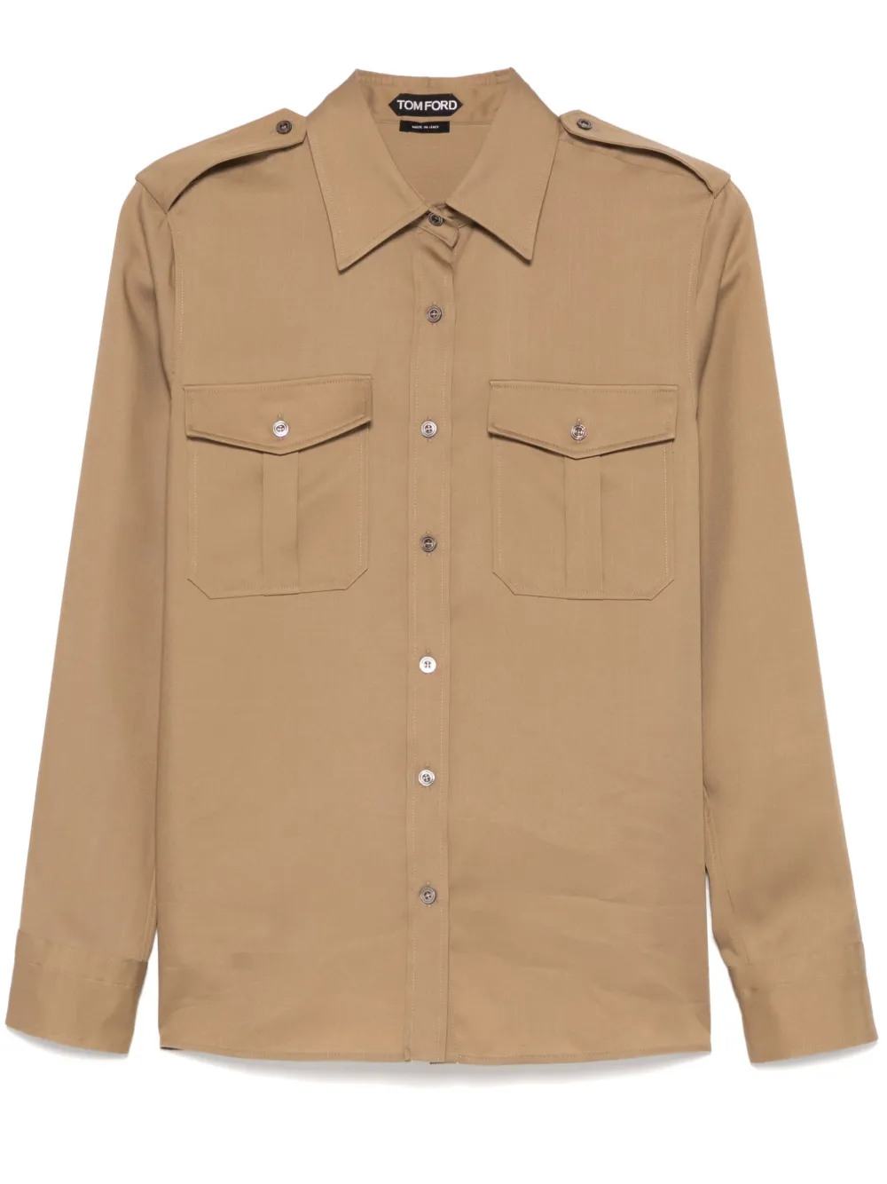Camasa TOM FORD Long-Sleeve bej, din lyocell, cu guler clasic, inchidere cu nasturi, maneci lungi, mansete cu nasturi, epoleti, buzunare aplicate la piept si tiv drept. Potrivita pentru sezonul primavara/vara. 100% lyocell.