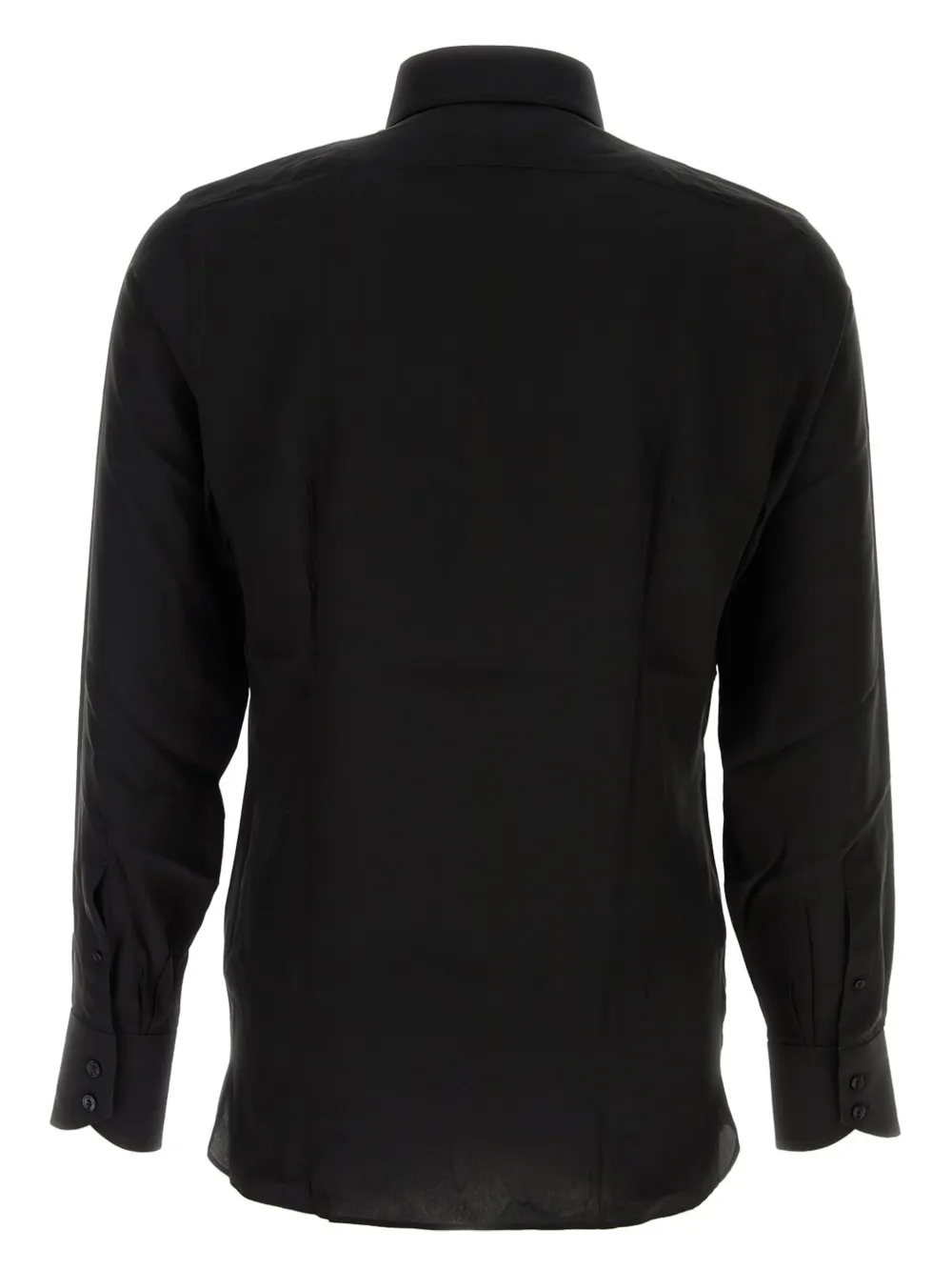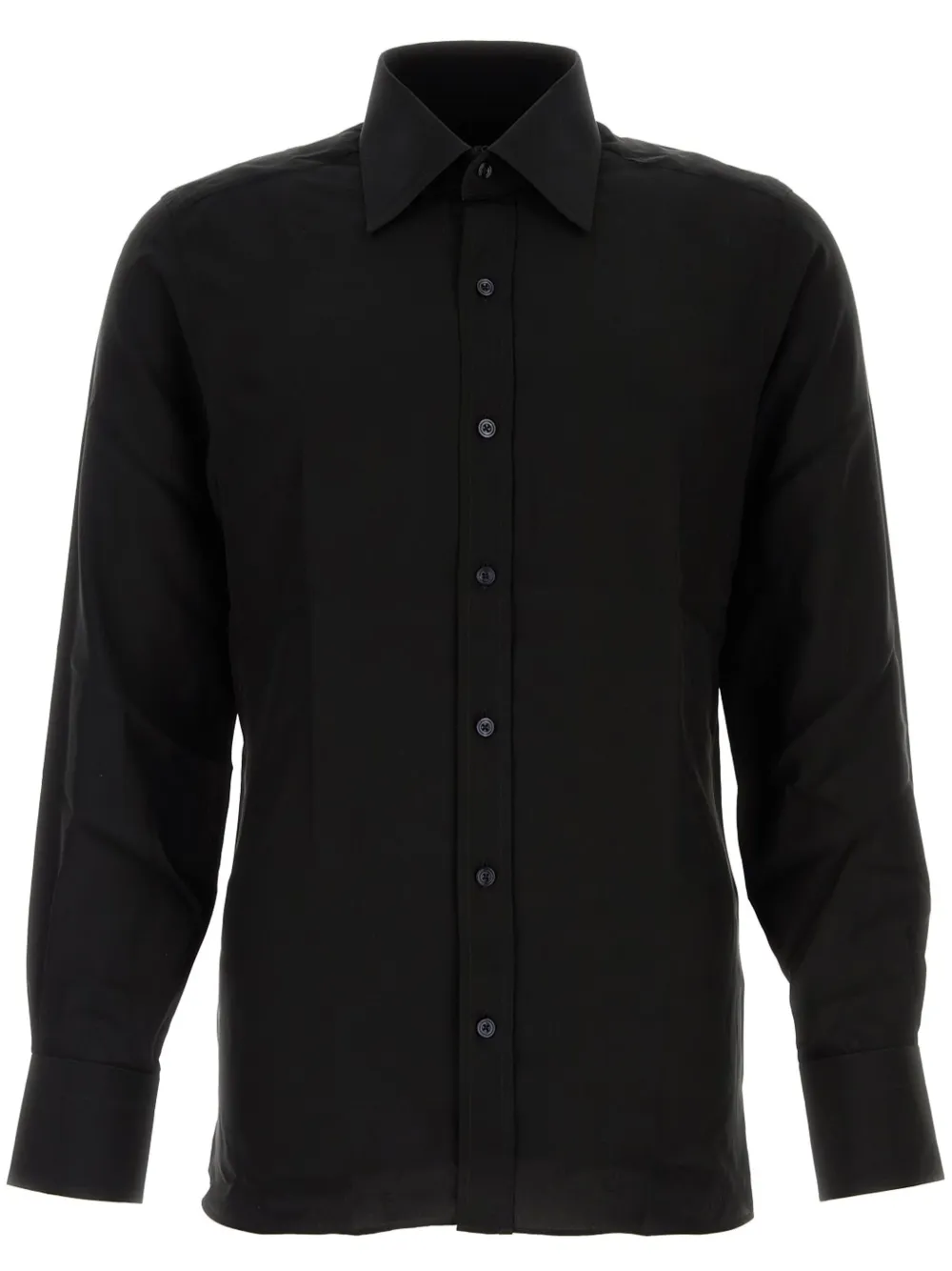 Camasa TOM FORD Silk negru, din matase, cu guler clasic, inchidere cu nasturi, maneci lungi, mansete cu nasturi si tiv drept. Potrivita pentru sezonul toamna/iarna. 100% matase.