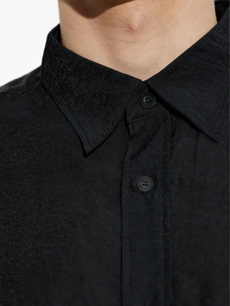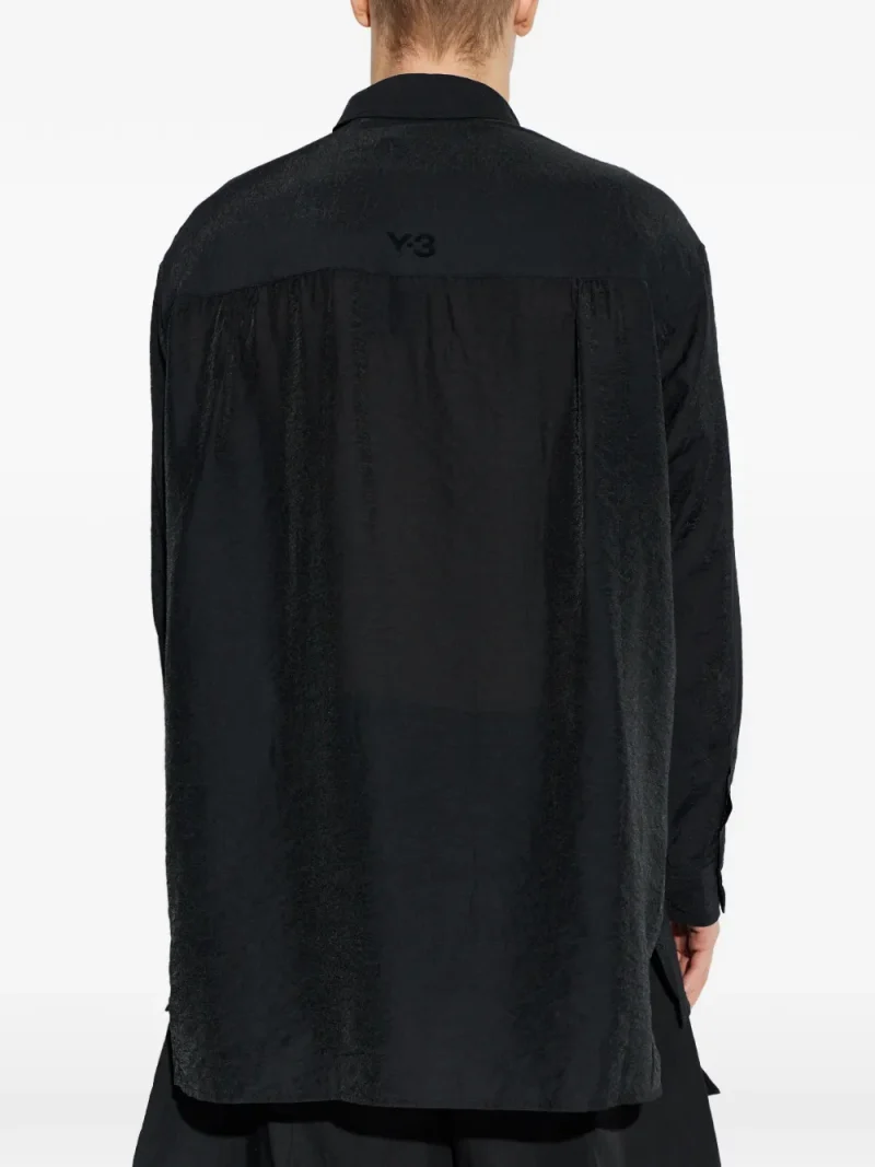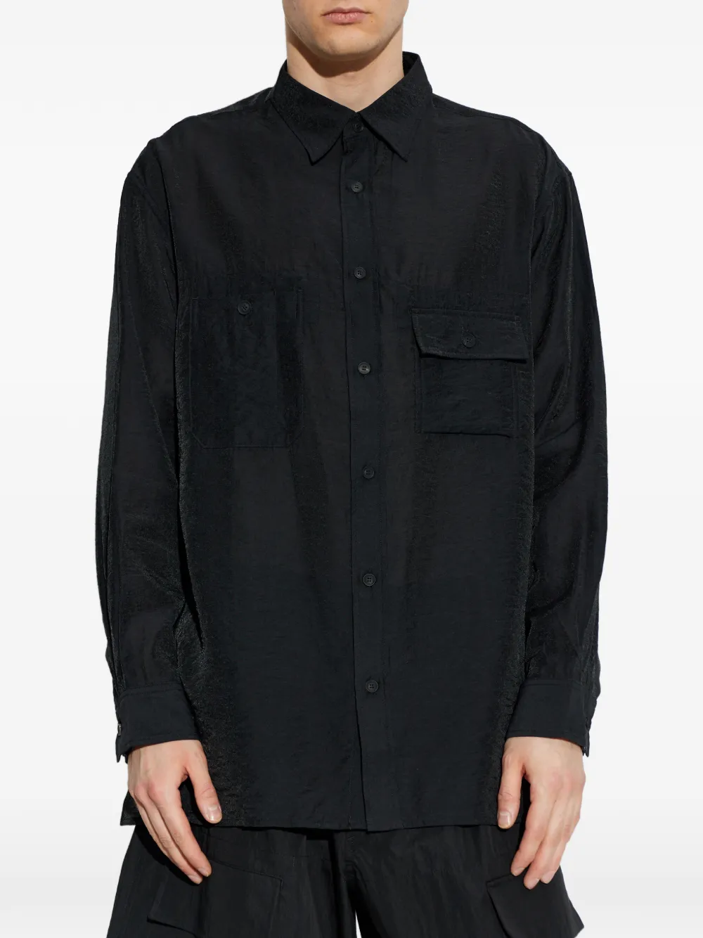 Camasa Y-3 Flap-Pocket neagra, cu buzunare cu clapeta pe piept, inchidere cu nasturi, maneci lungi si guler ascutit.69% vascoza 26% nylon 5% in