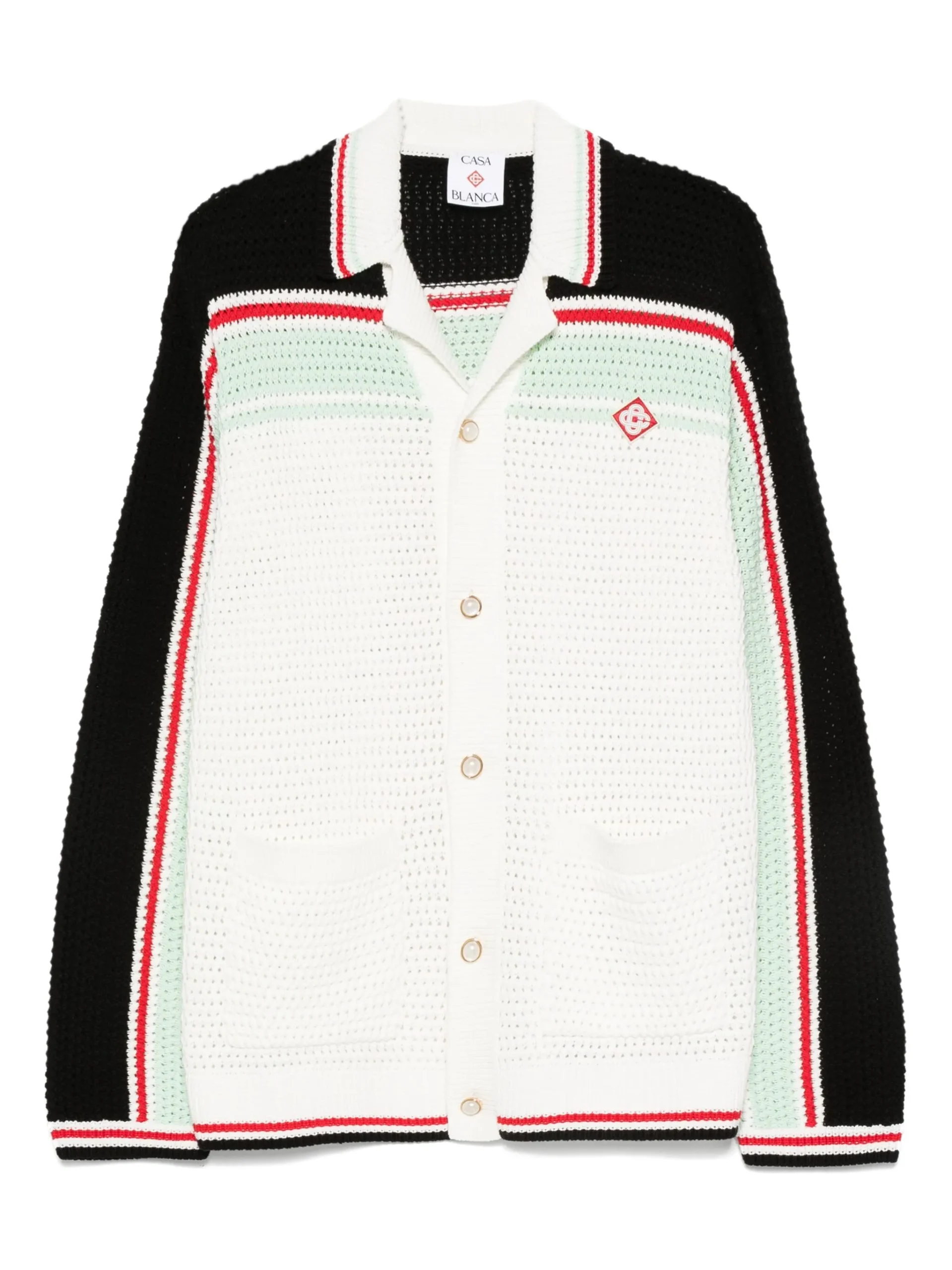 Cardigan Casablanca stripe-detail multicolor, inchidere cu nasturi, logo pe partea din fata, maneci lungi, tiv elastic. 100% bumbac