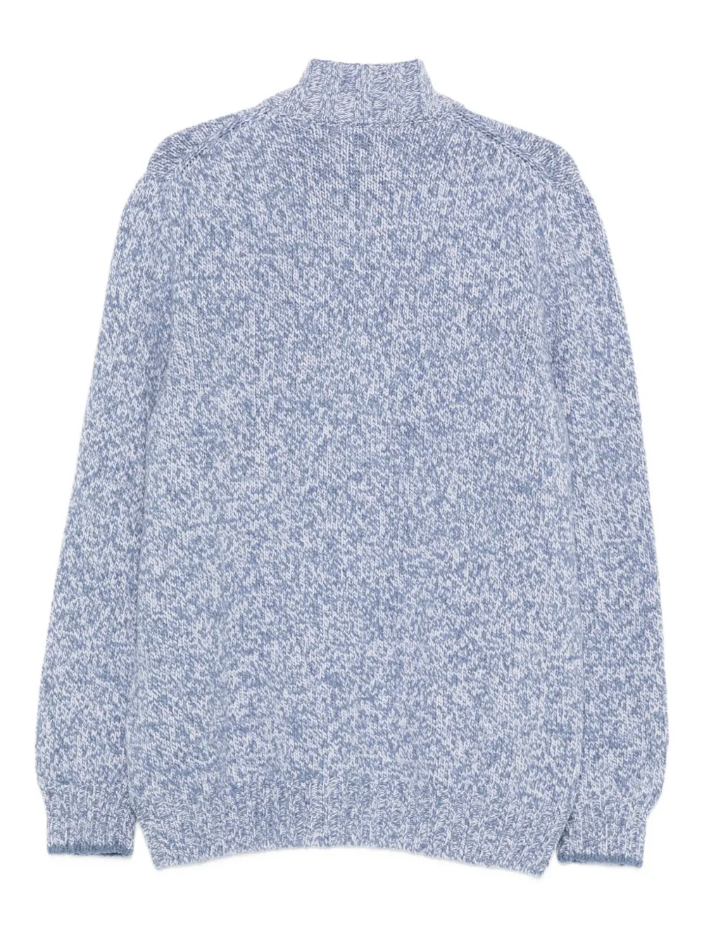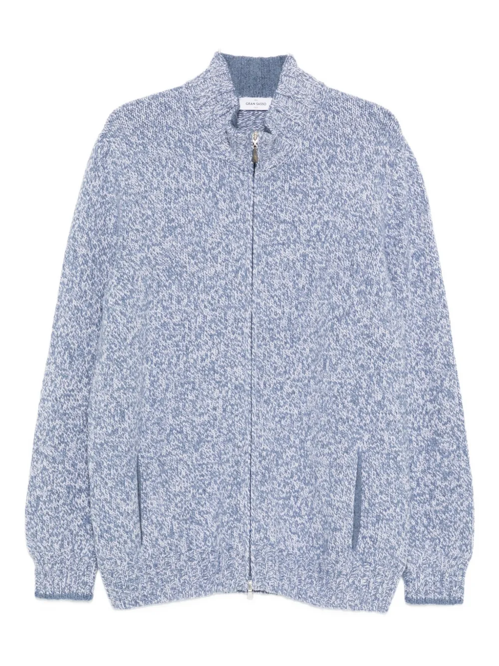 10Cardigan Gran Sasso Speckled Wool albastru, din lana premium cu densitate mare, guler inalt, inchidere cu fermoar bidirectional, maneci lungi, buzunare laterale si tiv ribbed. Potrivit pentru sezonul primavara/vara. 100% lana