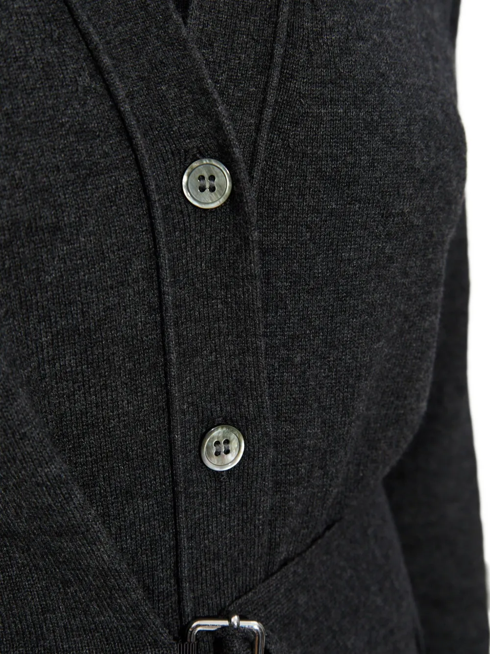Cardigan Isabel Marant Belted Buttoned gri, triotat din bumbac, cu decolteu in V, inchidere cu nasturi, maneci lungi, detaliu cu half-belt integrata pe sectiunea mediana a taliei si terminatii ribbed. Potrivit pentru sezonul toamna/iarna.100% bumbac