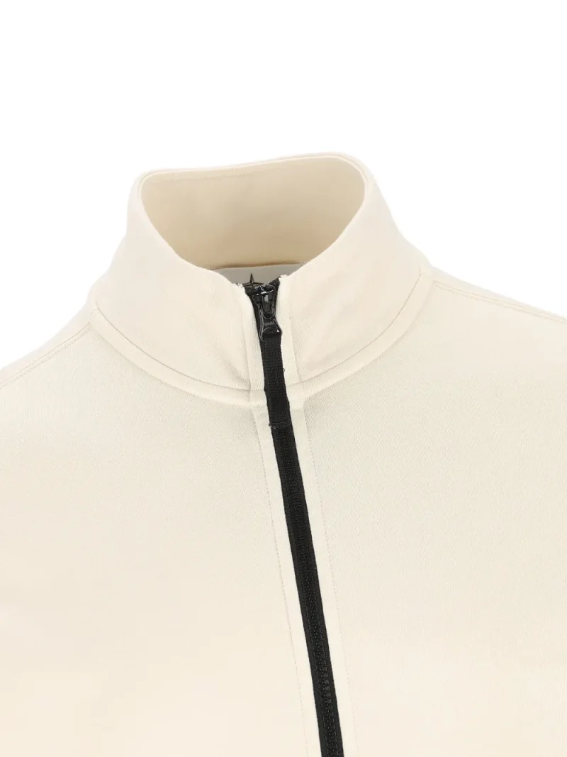 Cardigan Stone Island Zip Pocket bej, realizat din bumbac premium, cu guler inalt, inchidere cu fermoar, maneci lungi, mansete elastice, buzunar aplicat cu logo Compass Badge detasabil si tiv elastic drept. Potrivit pentru sezonul primvara/vara. 100% bumbac.