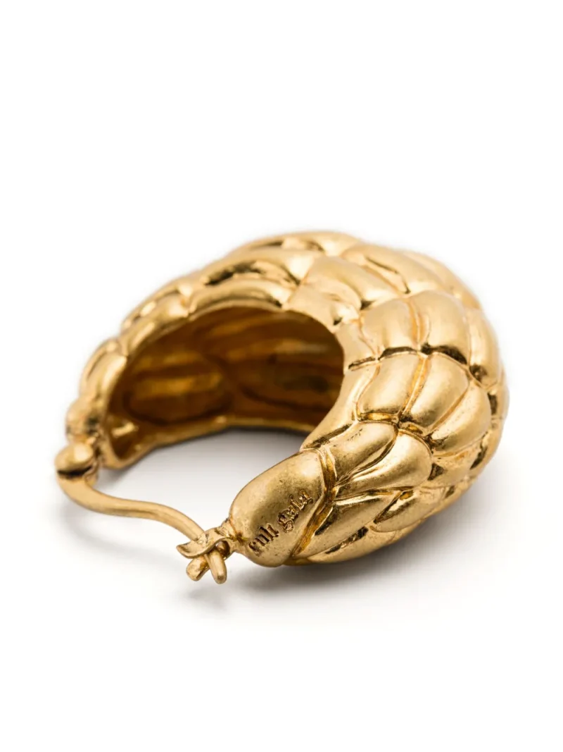 Cercei Cult Gaia Farina auriu, design hoop sculptural, efect polisat si inchidere tortita. 100% metal placat cu alama.