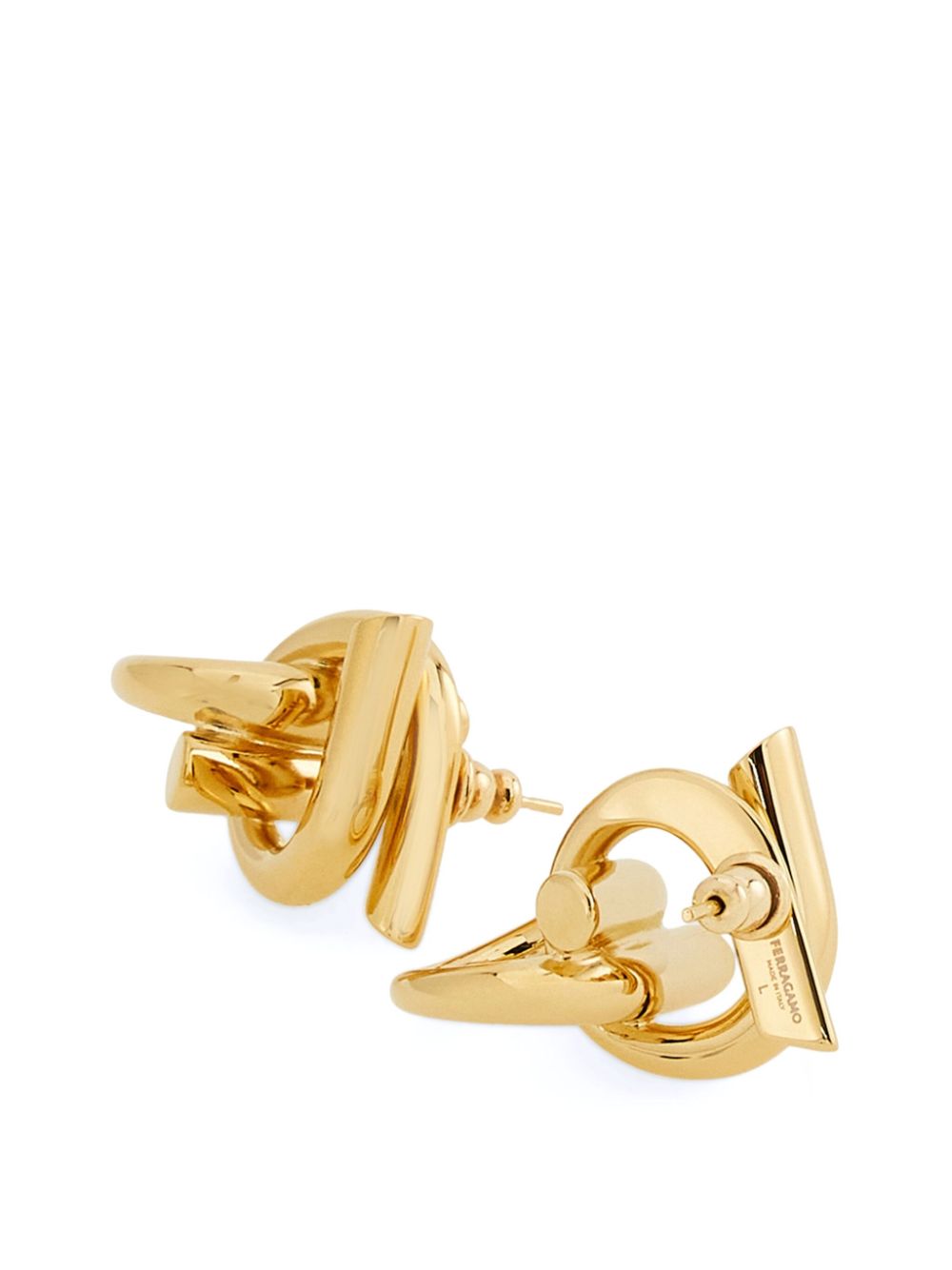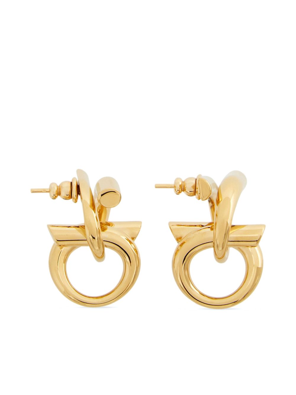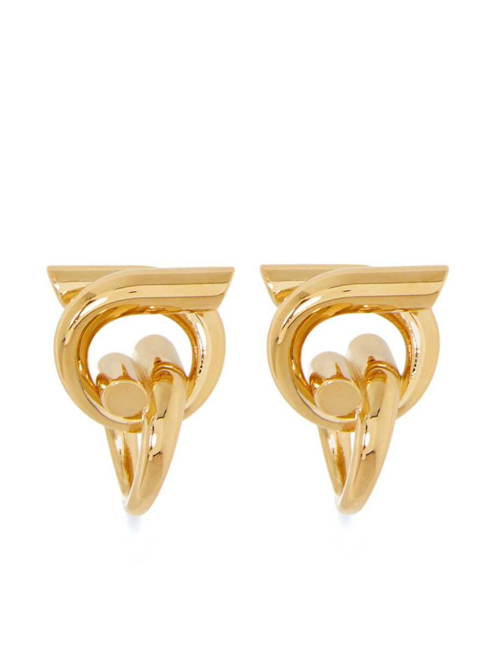 Cercei Ferragamo Gancini auriu, din alama, cu model Gancini, inchidere filet, logo Ferragamo gravat pe interior si aspect polisat. 100% alama.