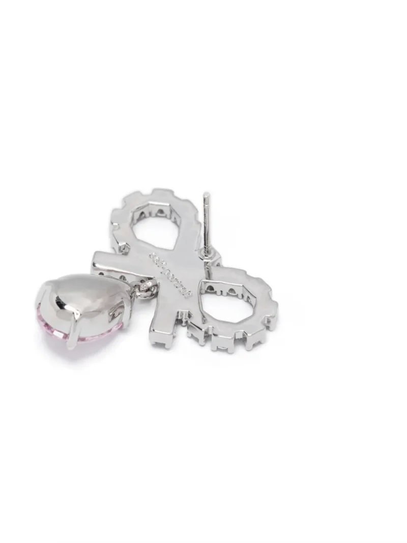 Cercei Self-Portrait Bow-Detail argintiu, din alama, decorati cu funda si cristal drop pink, logo gravat pe interior si inchidere pin. 100% ziroconiu; 100% inox; 100% alama.