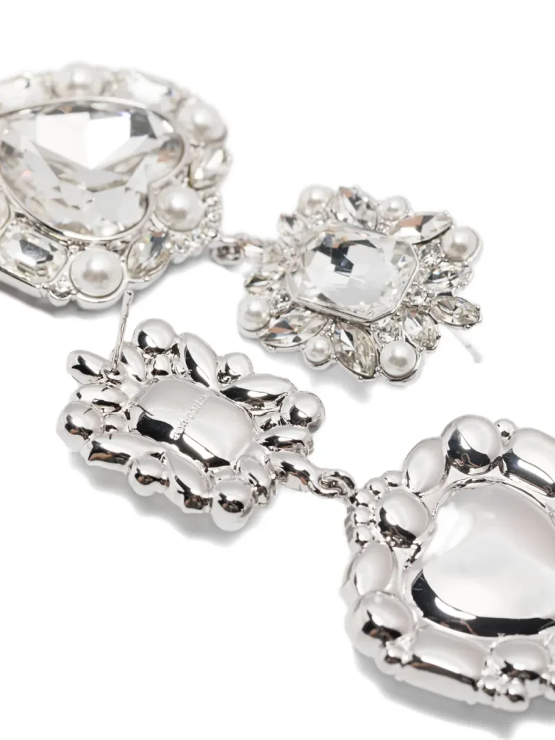 Cercei Self-Portrait Crystal-Pearl Tiered-Heart argintiu