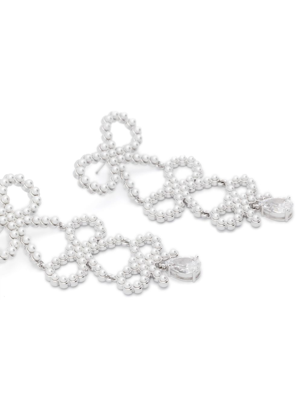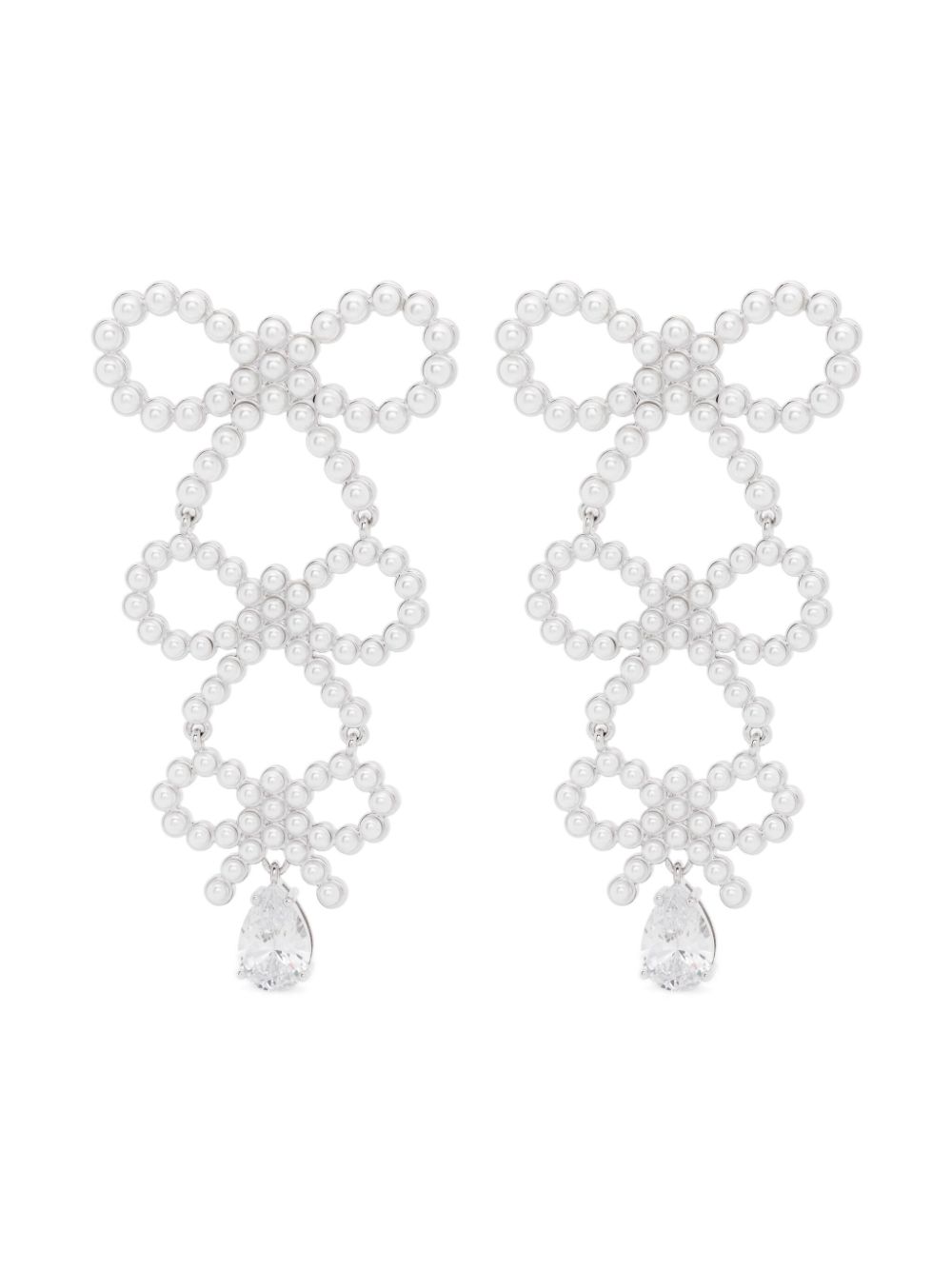 Cercei Self-Portrait Tiered Pearl Bow argintiu