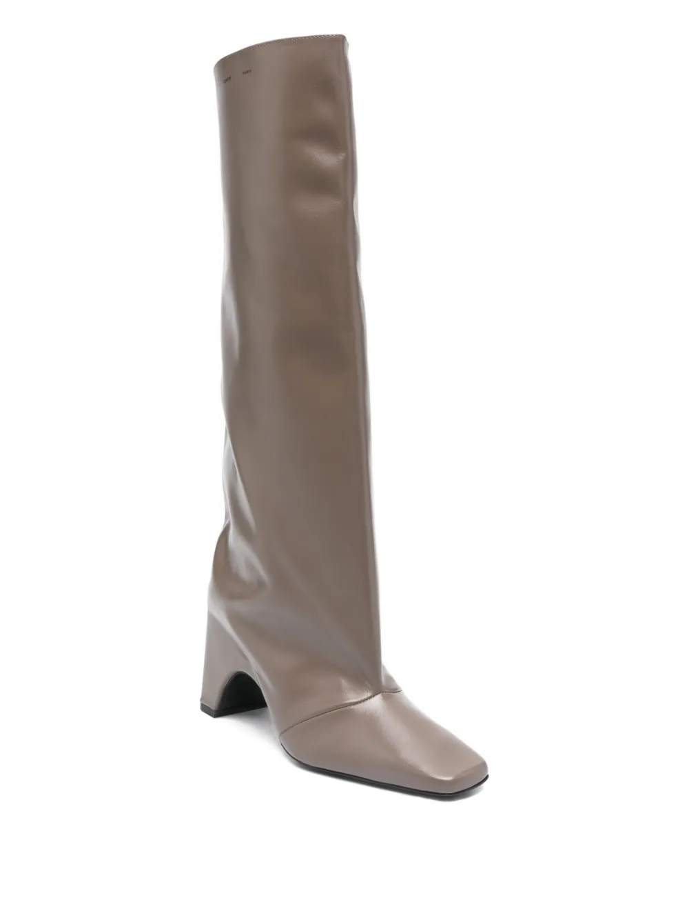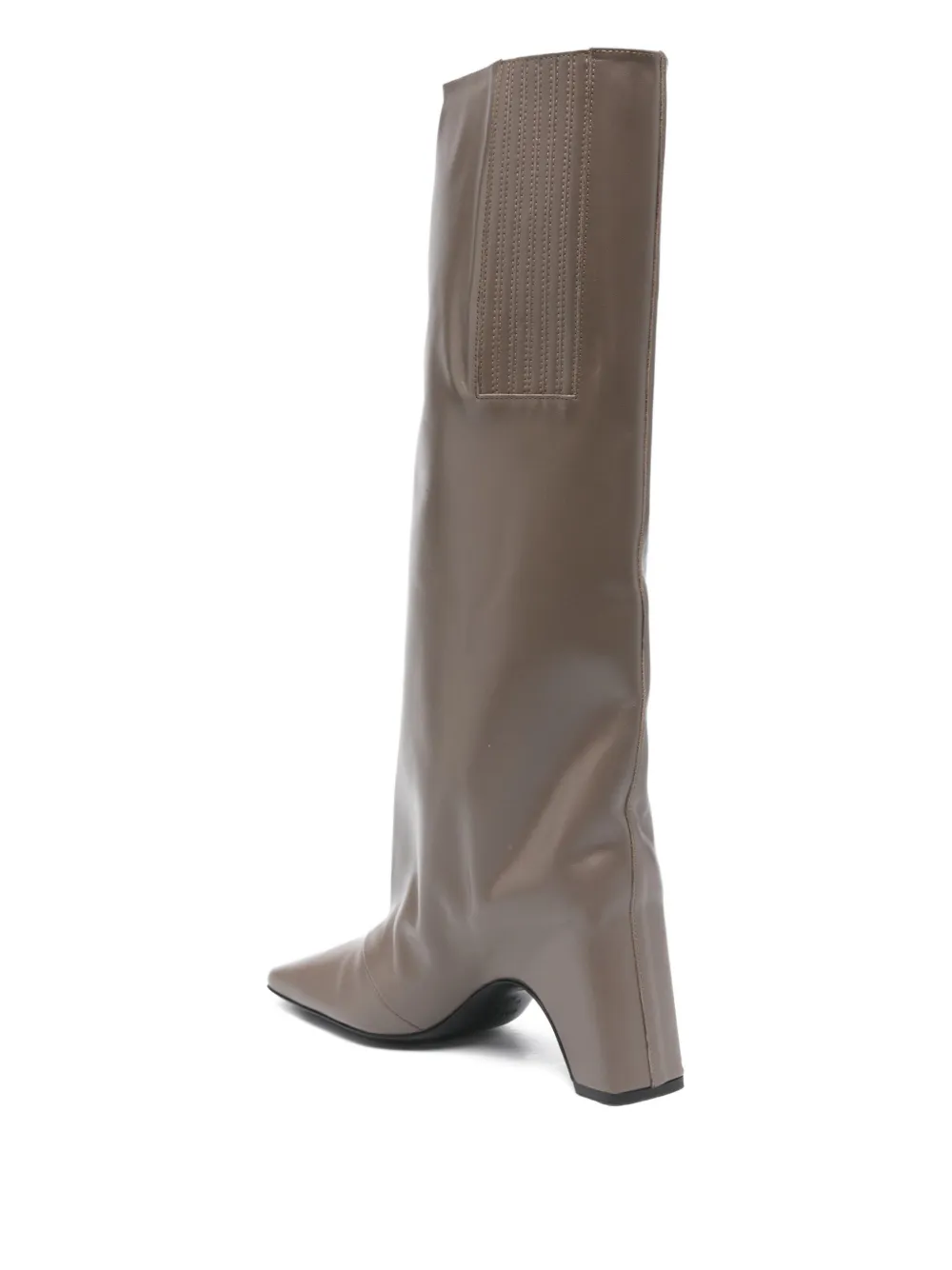Cizme Coperni 75mm Bridge bej, pull on style, construite din piele, cu logo gravat discret, varf patrat si toc sculptural de 7,5 cm. 100% piele de vitel; 100% piele de vitel; 100% piele de vitel.