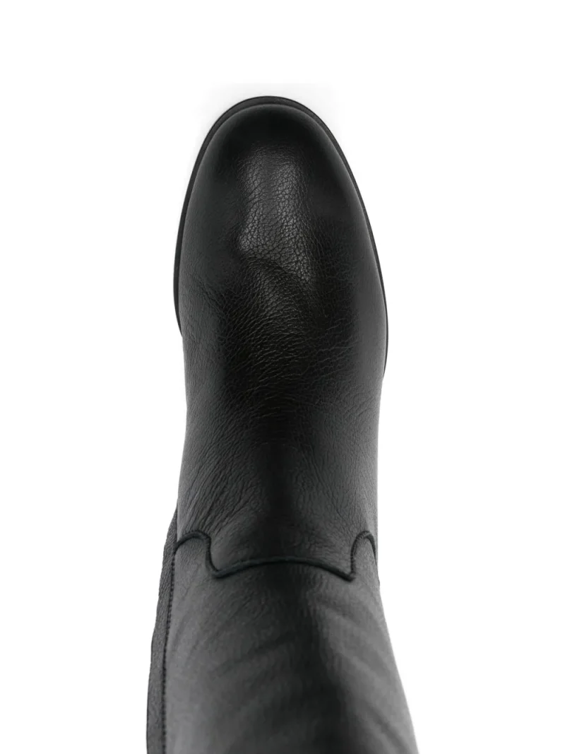 Cizme Doucal’s 45mm Calf Leather negru, tip pool-on, din piele, cu profil inalt, inchidere cu fermoar, toc de 4,5 cm si bot rotunjit. Potrivite pentru sezonul toamna/iarna. 100% piele de vitel; 100% piele de vitel; 100% piele de vitel.