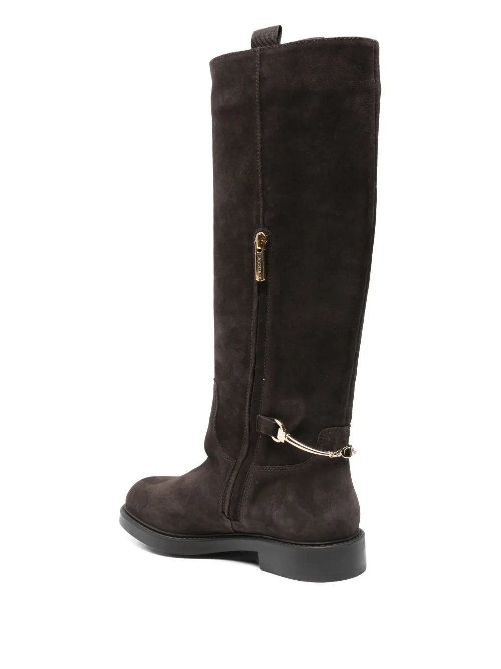 Cizme Doucal’s Suede Buckle-Detail maro, din piele intoarsa, cu inchidere fermoar, decoratiune metalica atasata la spate, bot rotunjit si talpa dreapta. 100% piele de vitel; 100% piele de vitel; 100% cauciuc.