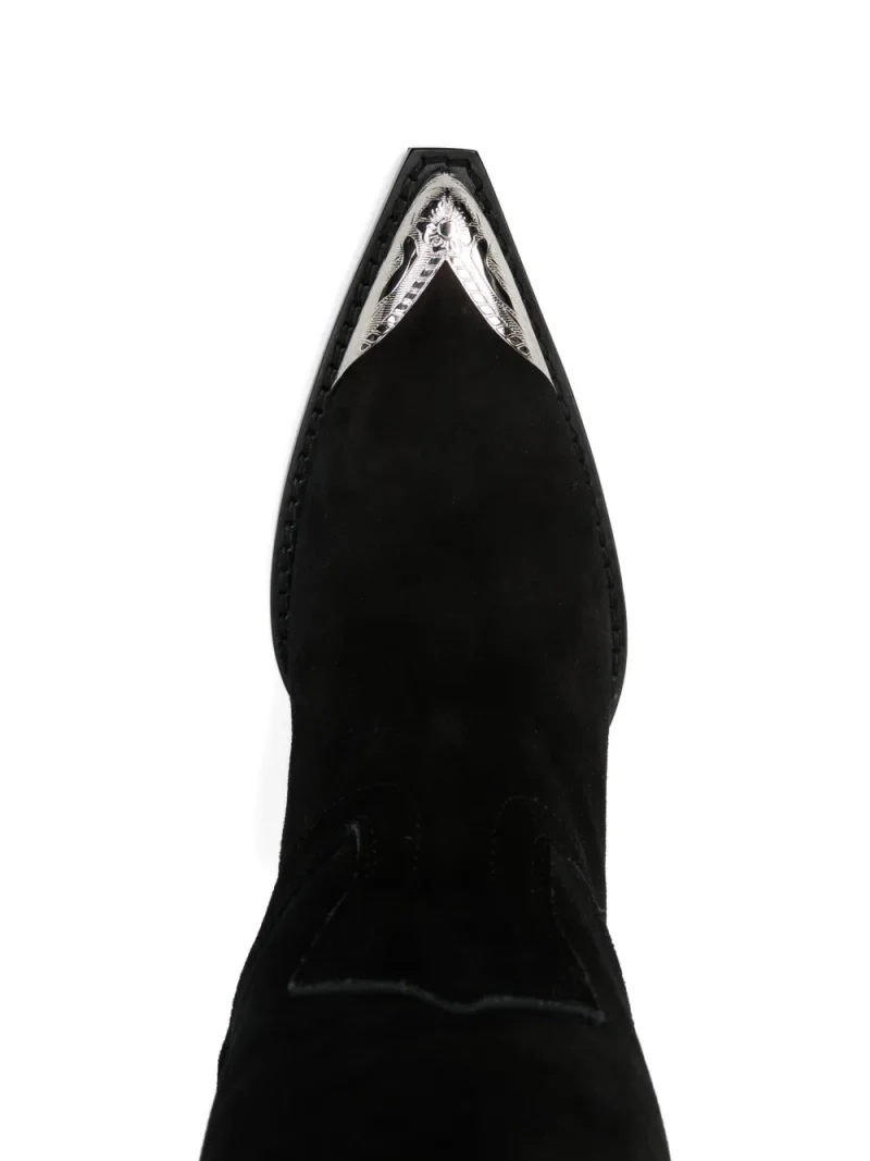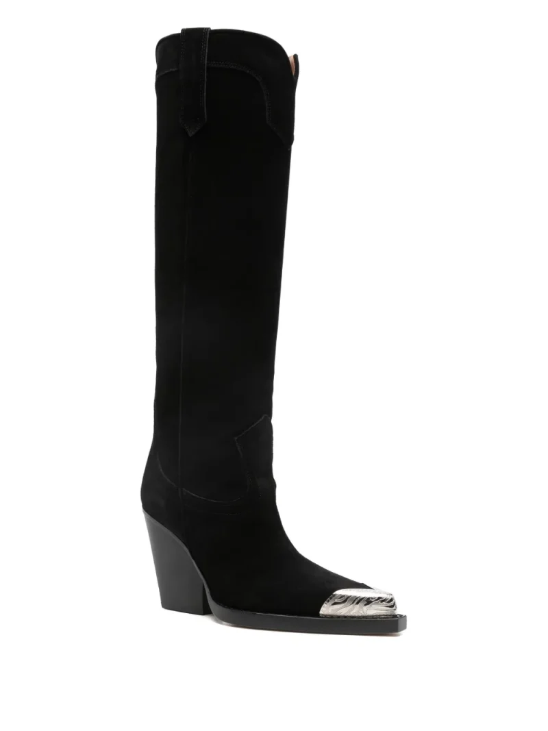 Cizme Paris Texas El Dorado Metal Toe 90mm negru, slip on style, tip western, cu profil inalt, varf patrat cu aplicatie decorativa metalica si toc angular. 100% piele.
