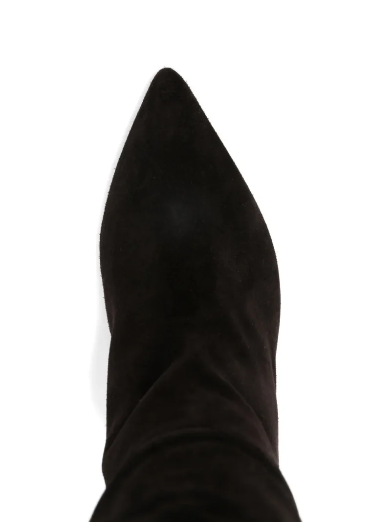 Cizme Paris Texas Pointed Calf Suede negru, realizate din piele intaorsa, cu profil inalt, decupaj la spate, varf ascutit si toc stiletto de 6 cm. 100% piele intoarsa.