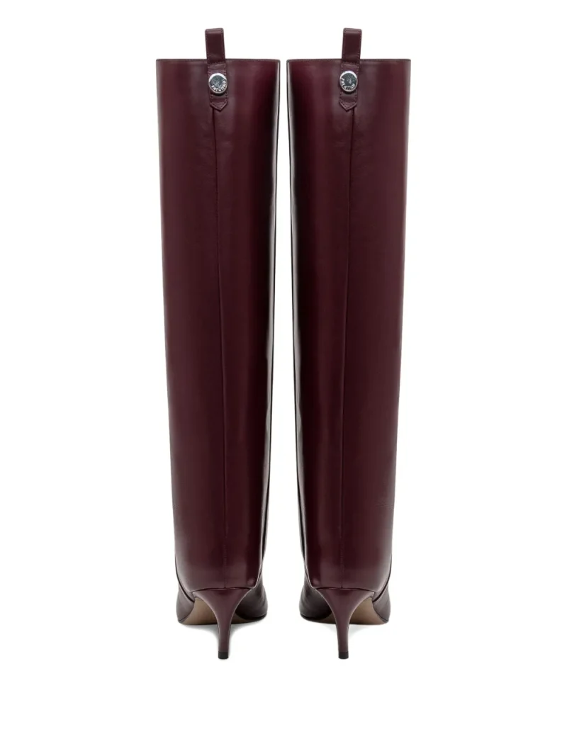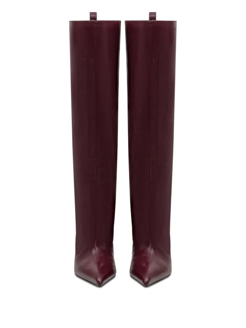 Cizme The Attico 65mm Lea Pointed-Toe Leather visiniu, pull-on style, realizate din piele neteda, cu profil inalt, si toc sculptural curbat de 6,5 cm. 100% piele de vitel; 100% piele de bovina; 100% piele de capra.