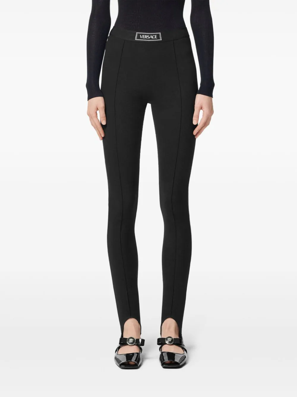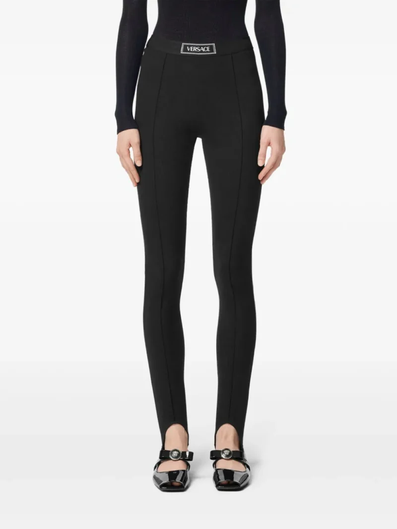 Colanti Versace Logo-Waistband negru, din textil, cu talie inalta si banda elastica cu eticheta logo Versace cusuta, cusaturi verticale pe partea din fata si tesatura elastica. Potriviti pentru sezonul toamna/iarna. 100% textil.