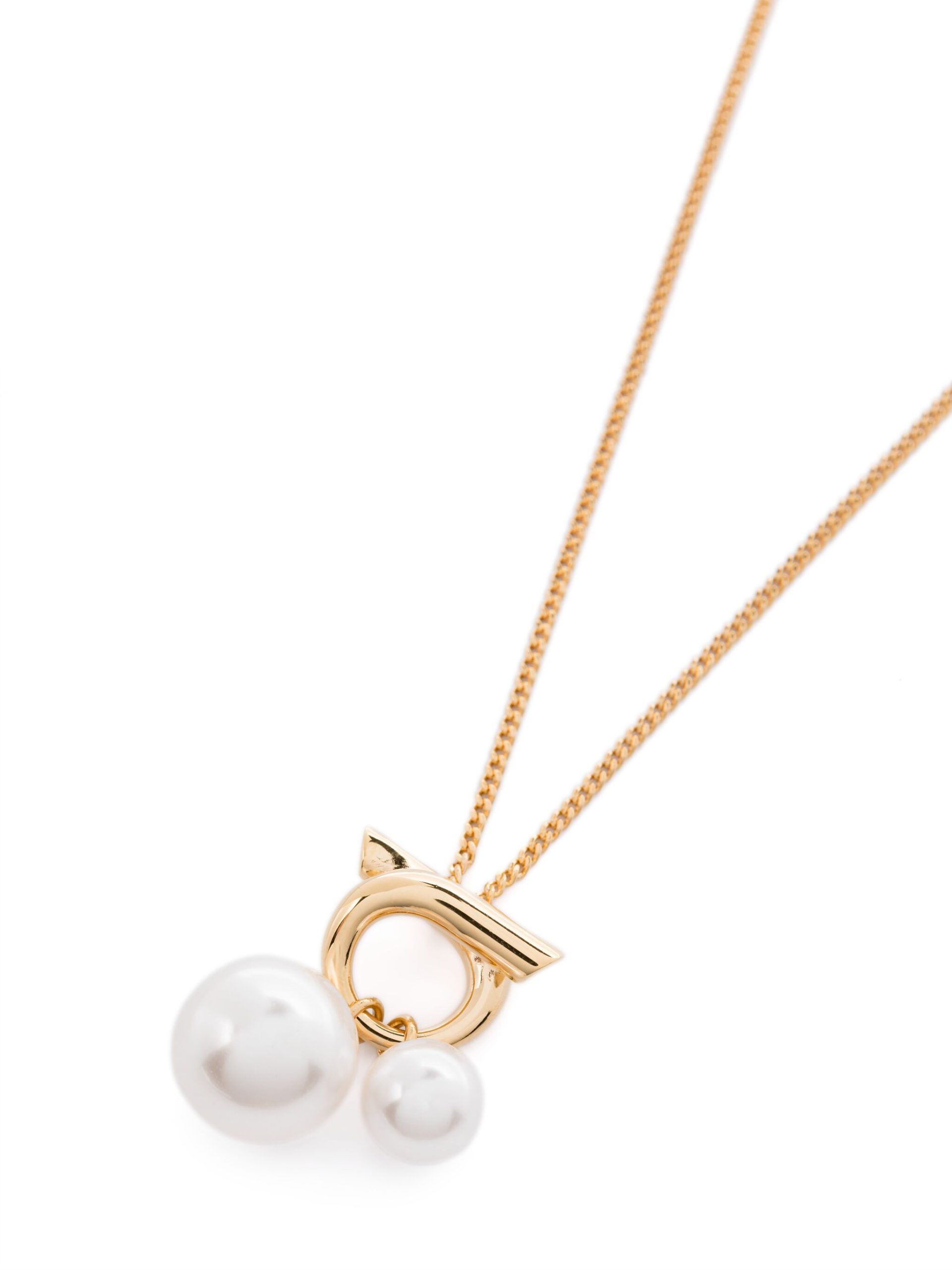 Colier auriu din alama, cu inchidere ajustabila mini-carabina si pandantiv FERRAGAMO decorat cu perle .70% alama 30% sticla
