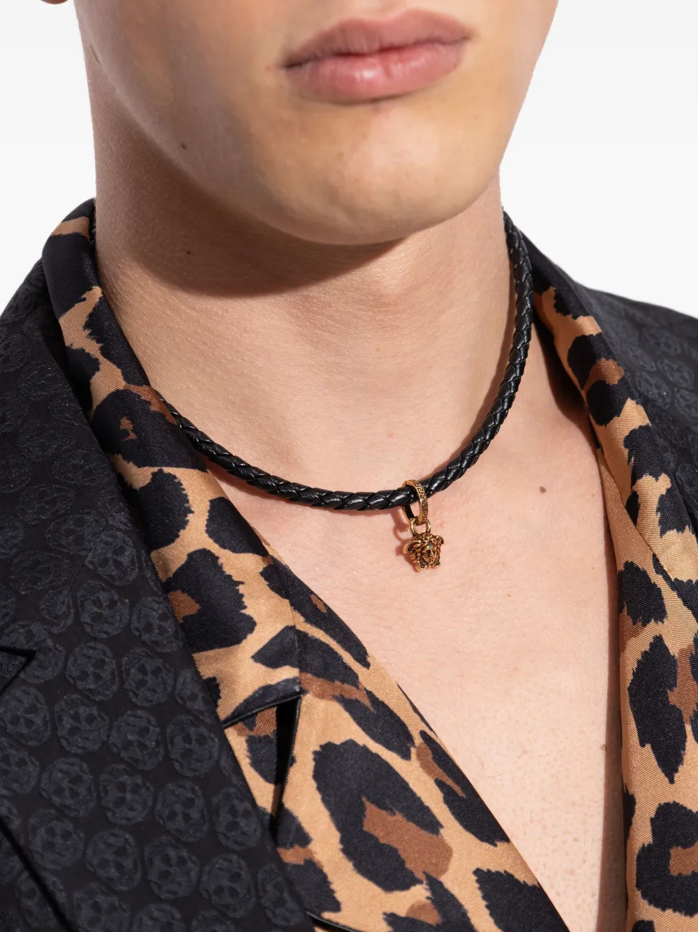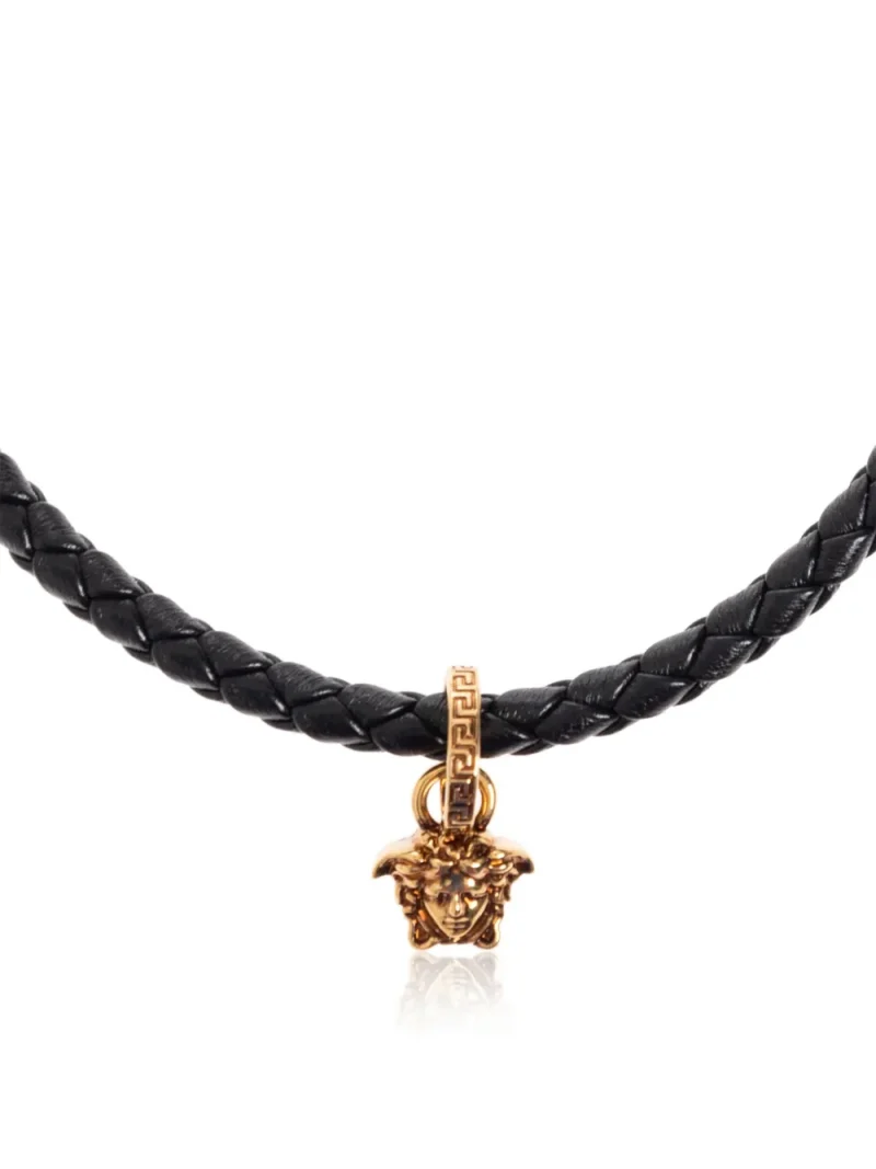 Colier Versace braided leather Medusa negru