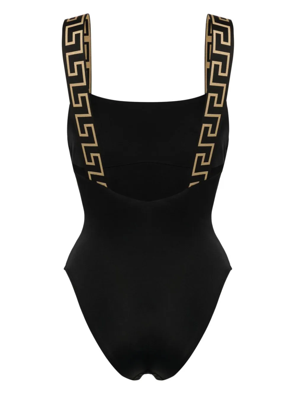 Costum de baie Versace Greca-Detailing negru, format dontr o singura piesa, cu barete pt umeri late cu grafica Versace Greca in tesatura, decolteu patrat, tesatura elastica si spatele gol. 78% poliamida; 22% elastan; 78% poliamida; 22% elastan. Aveti grija sa probati costumele de baie deasupra propriilor articole de imbracaminte.