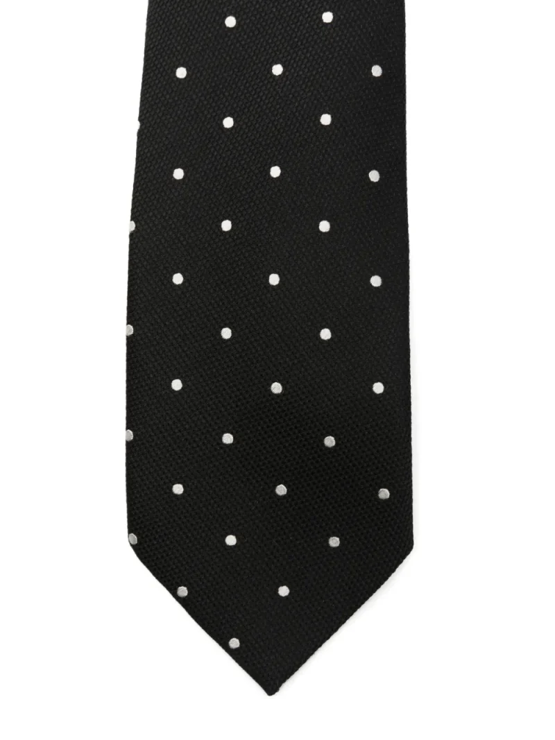Cravata TOM FORD Polka Dot negru, realizata din matase, cu inchidere nod si grafica Polka Dot in tesatura. 100% matase Mulberry.