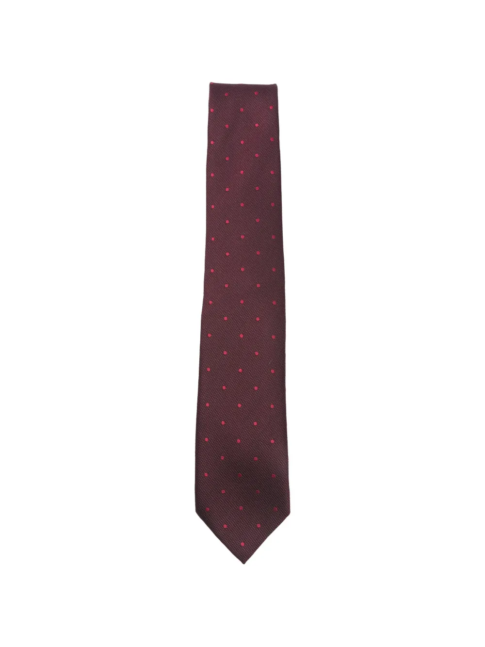 Cravata TOM FORD Polka Dot rosu, realizata din matase, cu inchidere nod si grafica Polka Dot in tesatura. 100% matase Mulberry.