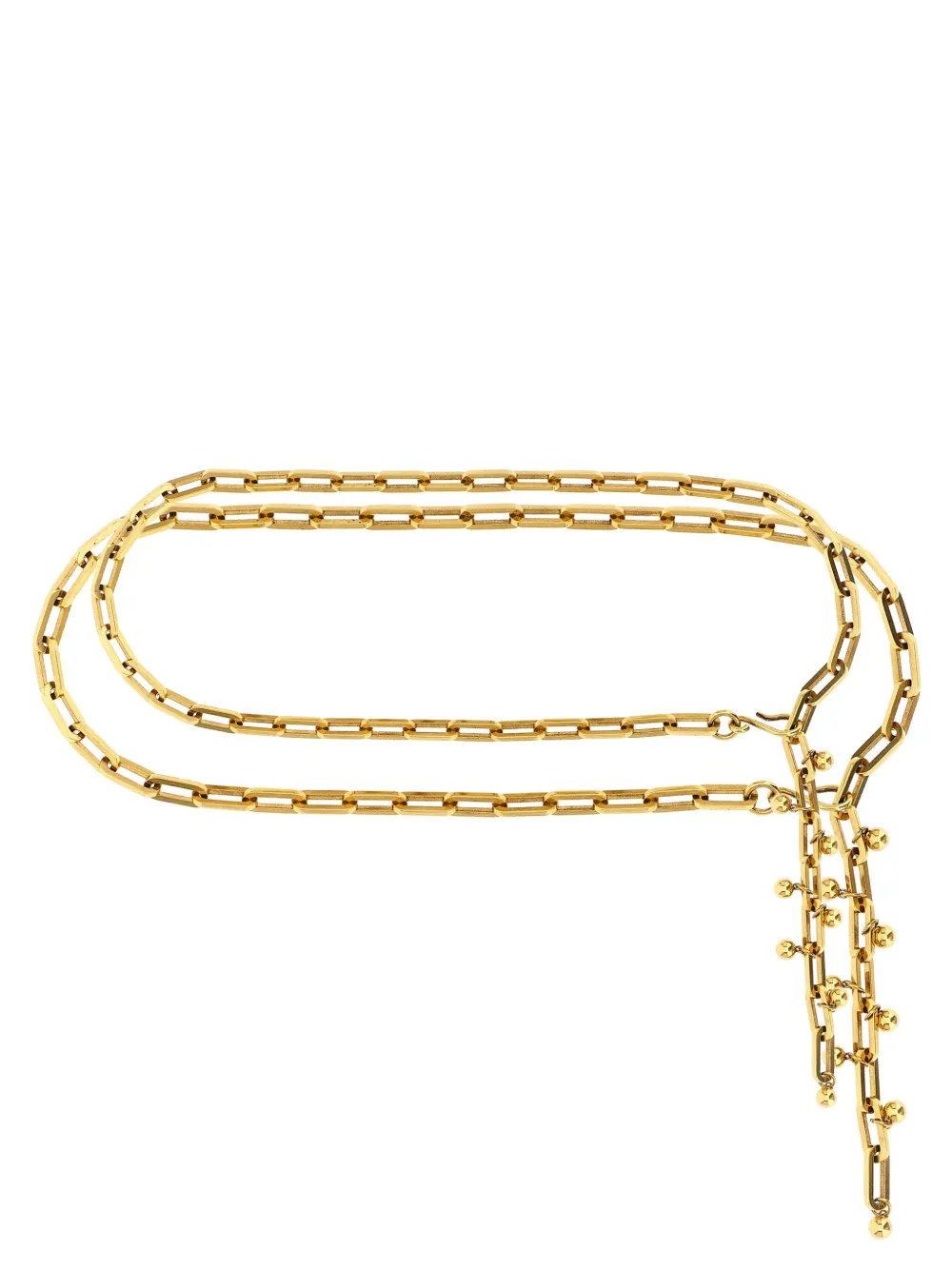 Curea Etro Chain Beaded-Detail auriu, din alama, tip chain-link, cu decoratiuni metalice si inchidere carabina. 100% alama.