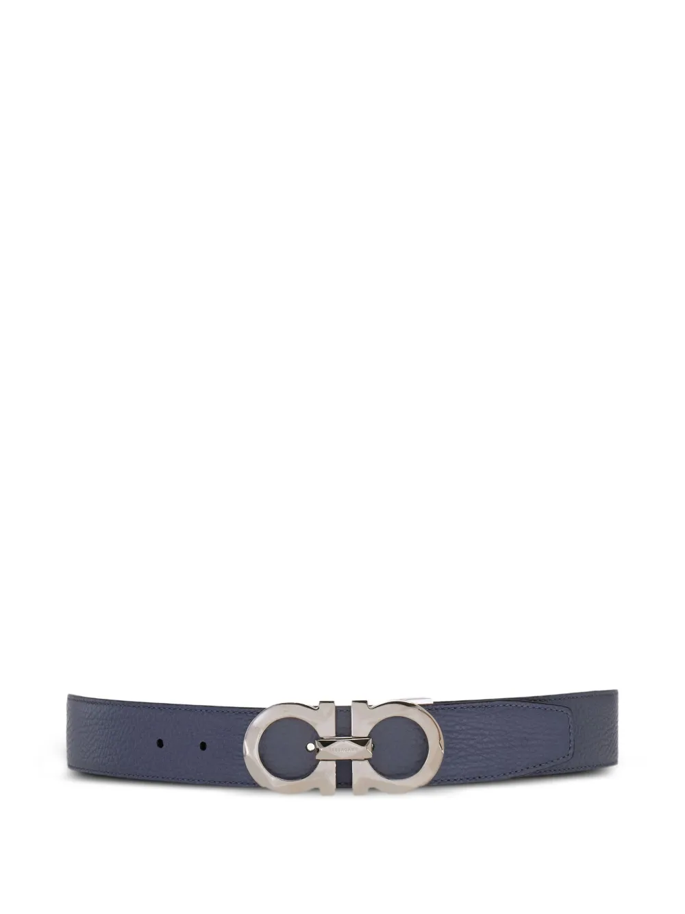 Curea Ferragamo Gancini-Buckle Reversible gri, din piele, cu inchidere pin ajustabila si catarama Gancini cu logo gravat. 100% piele de vitel.