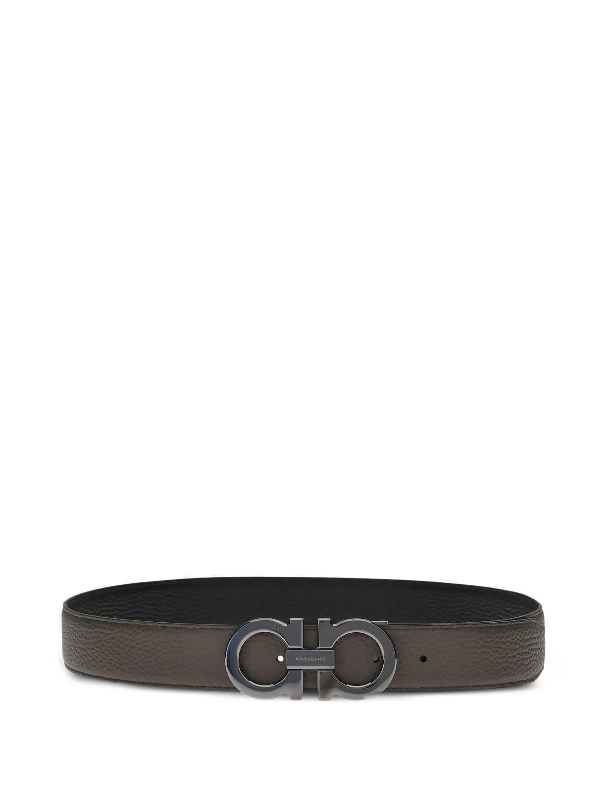 Curea Ferragamo Gancini-buckle reversibila maro, din piele de vitel, cu catarama Gancini, design reversibil si ajustabila. 100% piele