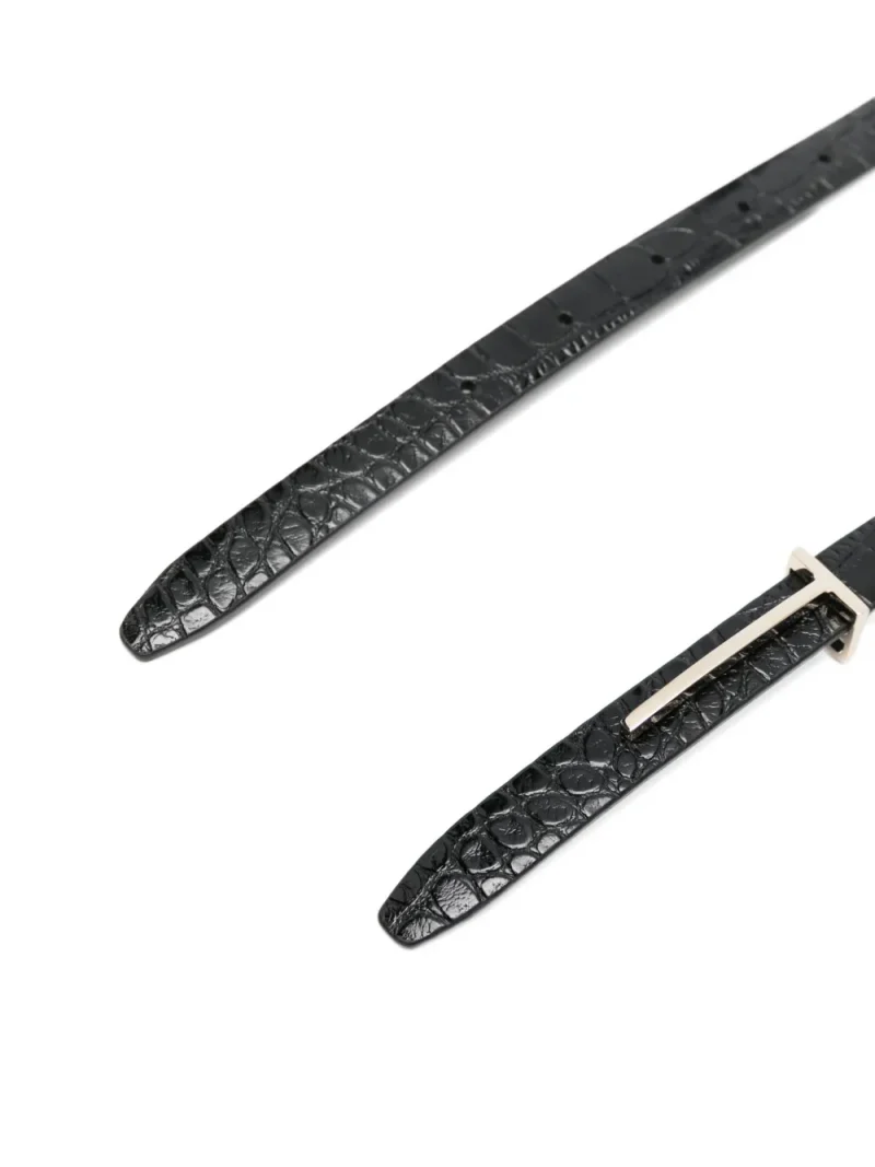 Curea Tom Ford Crocodile-Embossed T-buckle negru, din piele, ajustabila, cu inchidere pin si logo metalic. Detalii: Lungime- 80 cm; Latime- 3cm. 100% piele de vitel; 100% piele de vitel; 100% alama.