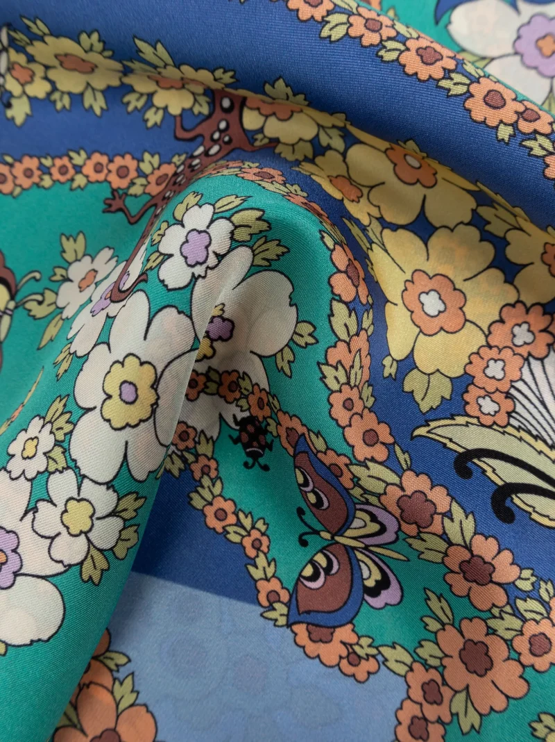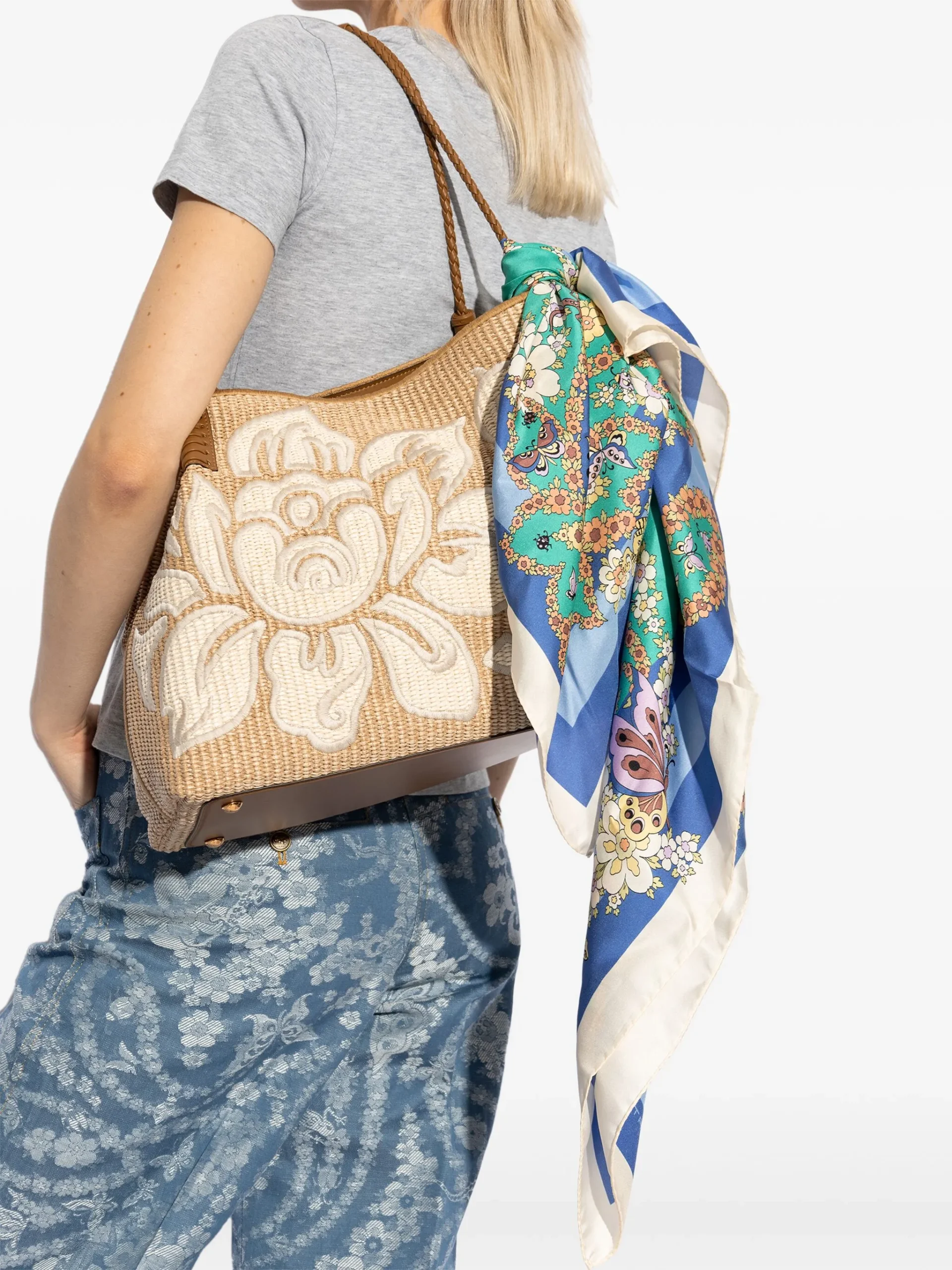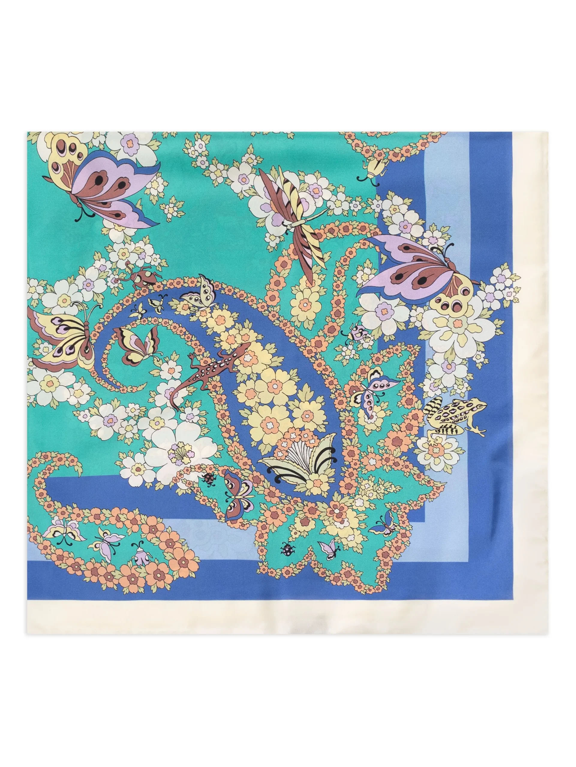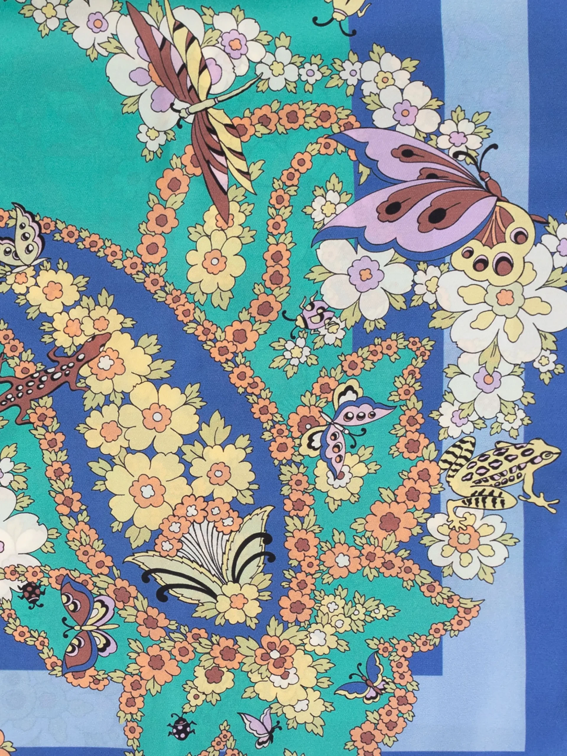 Esarfa ETRO floral-print albastra din matase, imprimeu floral, detaliu dungi si forma patrata.100% matase