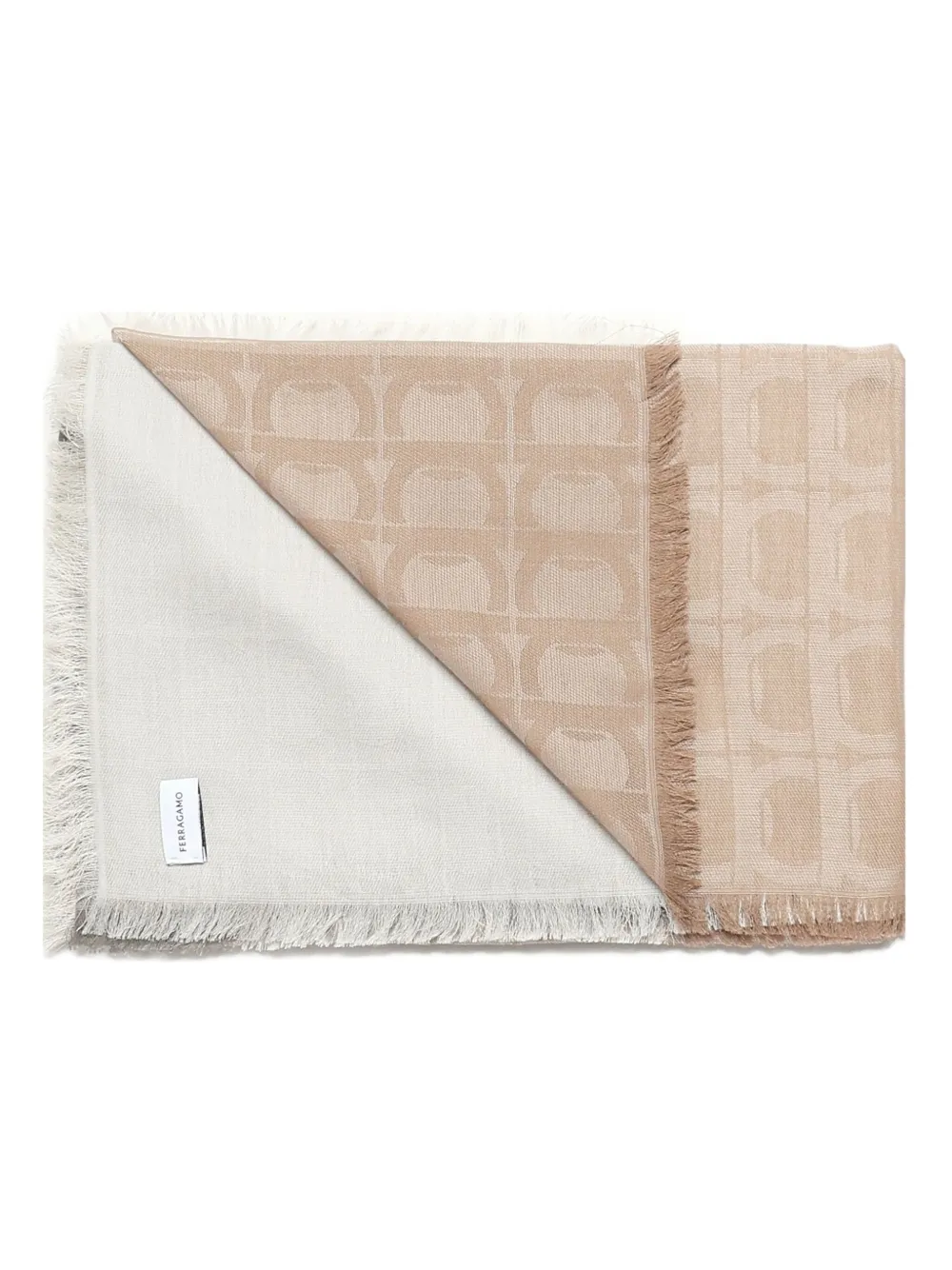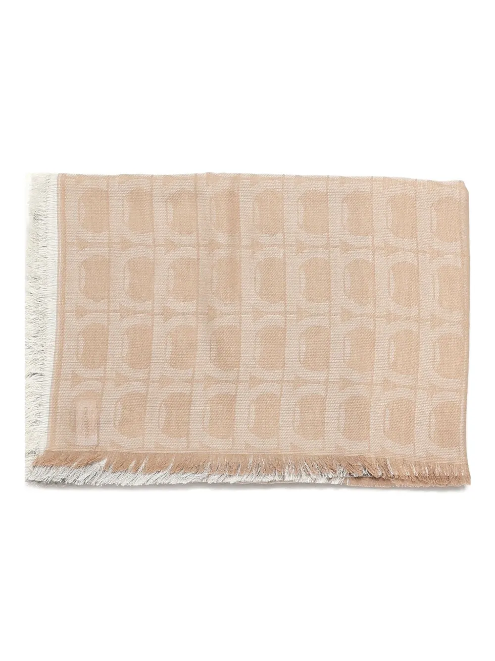 Esarfa Ferragamo Gancini-Pattern Fringed bej