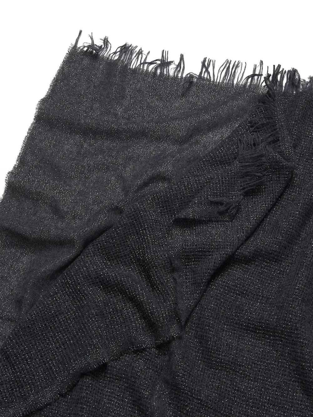 Esarfa Peserico Metallic-Flecked Fringed gri, realizat din lana, cu forma dreptunghiulara, decorat cu fibre metalice si tiv cu franjuri. 95% lana; 5% fire metalice.