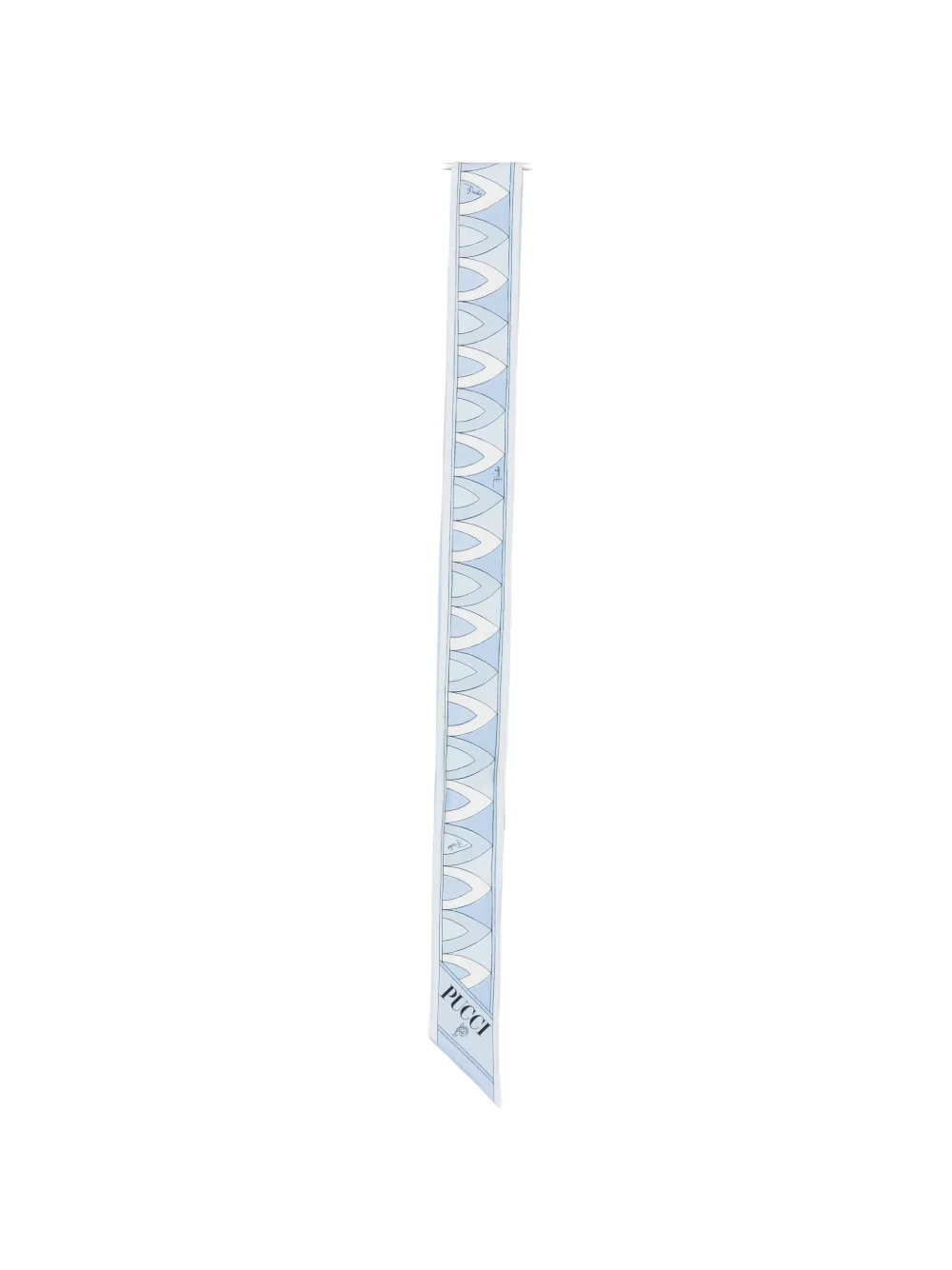 Esarfa PUCCI Patterned albastru, realizata din matase satinata, cu forma dreptunghiulara, grafica imprimata si tiv asimetric. 100% matase.