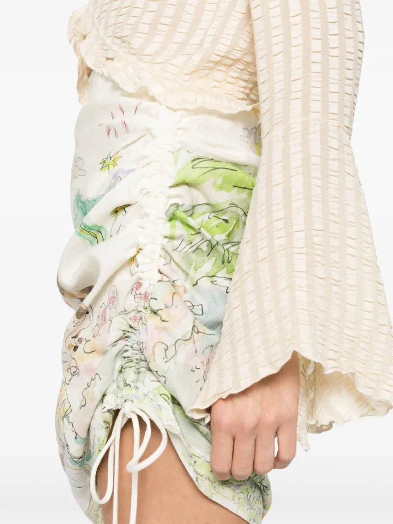 Fusta Alemais Linen Draped ecru, din in, cu talie inalta, model drapat cu inchidere ajustabila snur, grafica imprimata si tiv asimetric. Potrivita pentru sezonul toamna/iarna. 100% in.